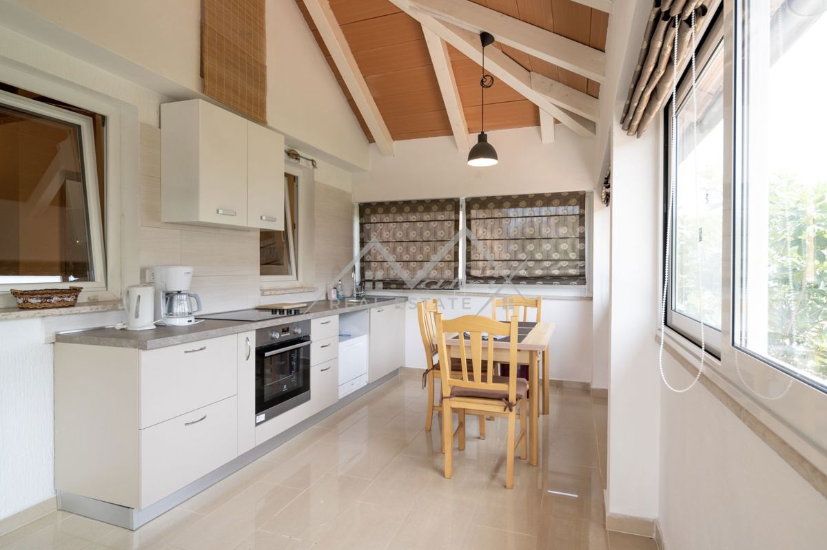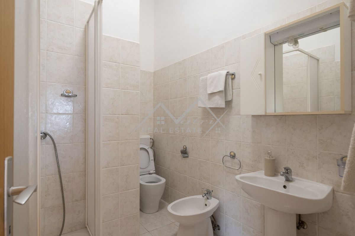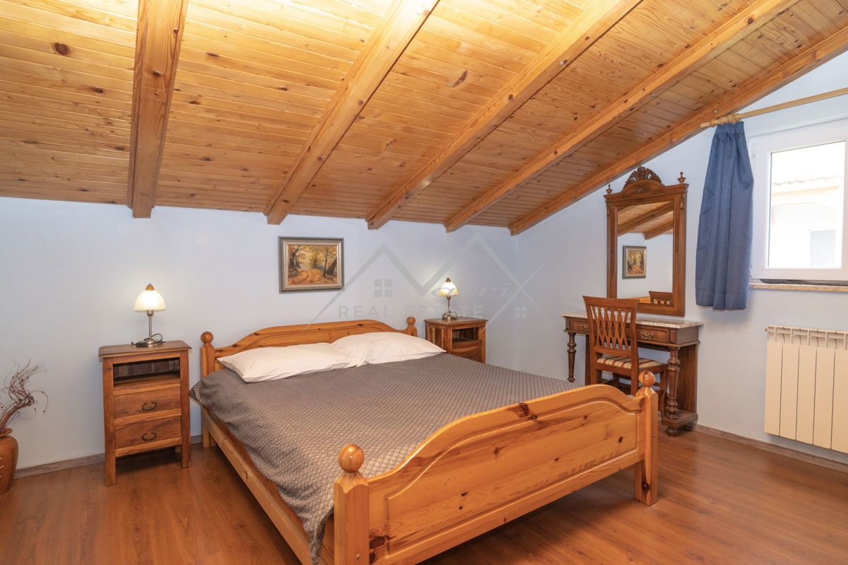 Upoznajte ovu šarmantnu kuću iz snova koja se nalazi na predivnoj lokaciji, tik uz obalu mora i samo nekoliko minuta udaljena od centra Poreča! Ova očaravajuća nekretnina je smještena na prostranoj parceli od 555 m2, s površinom kuće od 267 m2, pružajući