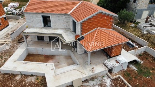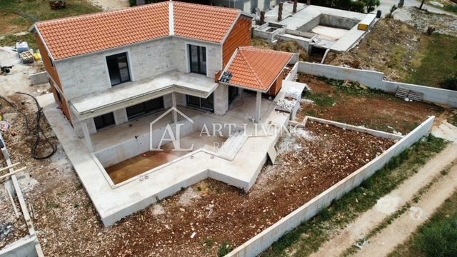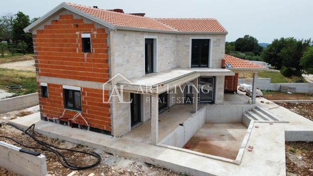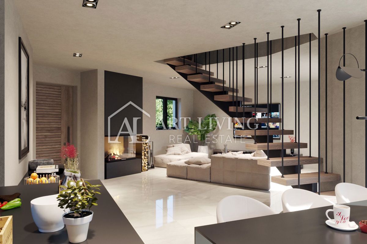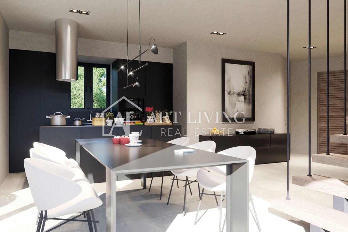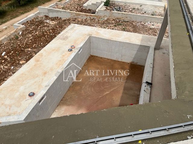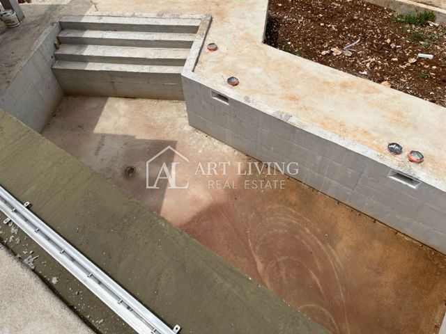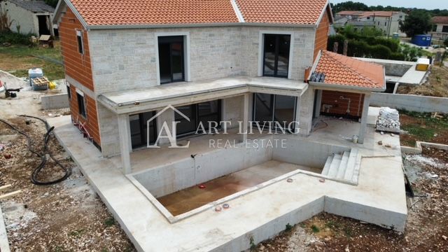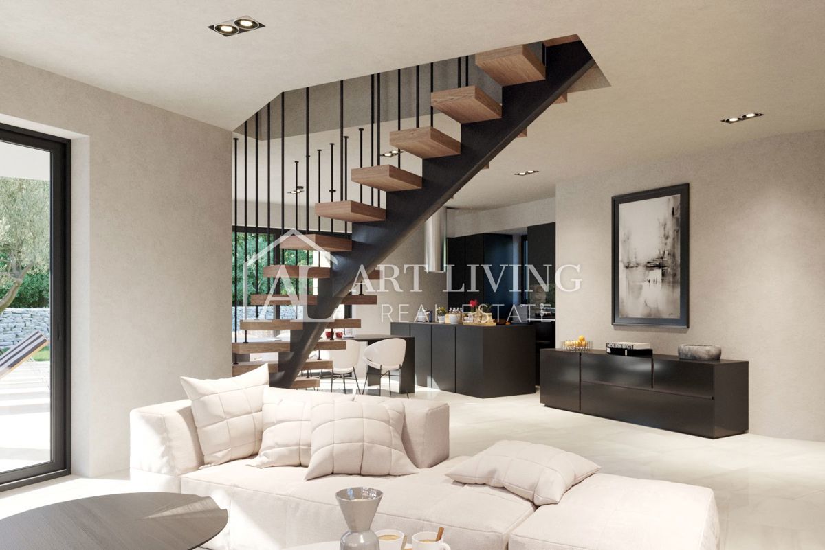 Poreč, okolica, Prodaje se prekrasna Vila u istarskom stilu moderne arhitekture s bazenom i otvorenim pogledom na more i pejzaž. Vila je smještena na mirnoj lokaciji i okružena prirodom i zelenilom. Udaljena je 8 km od mora i grada Poreča. Ova šarmantna