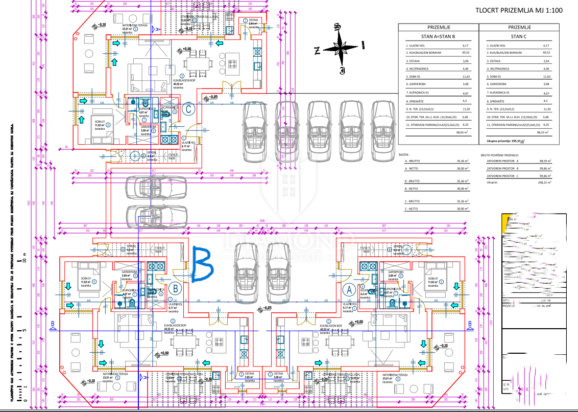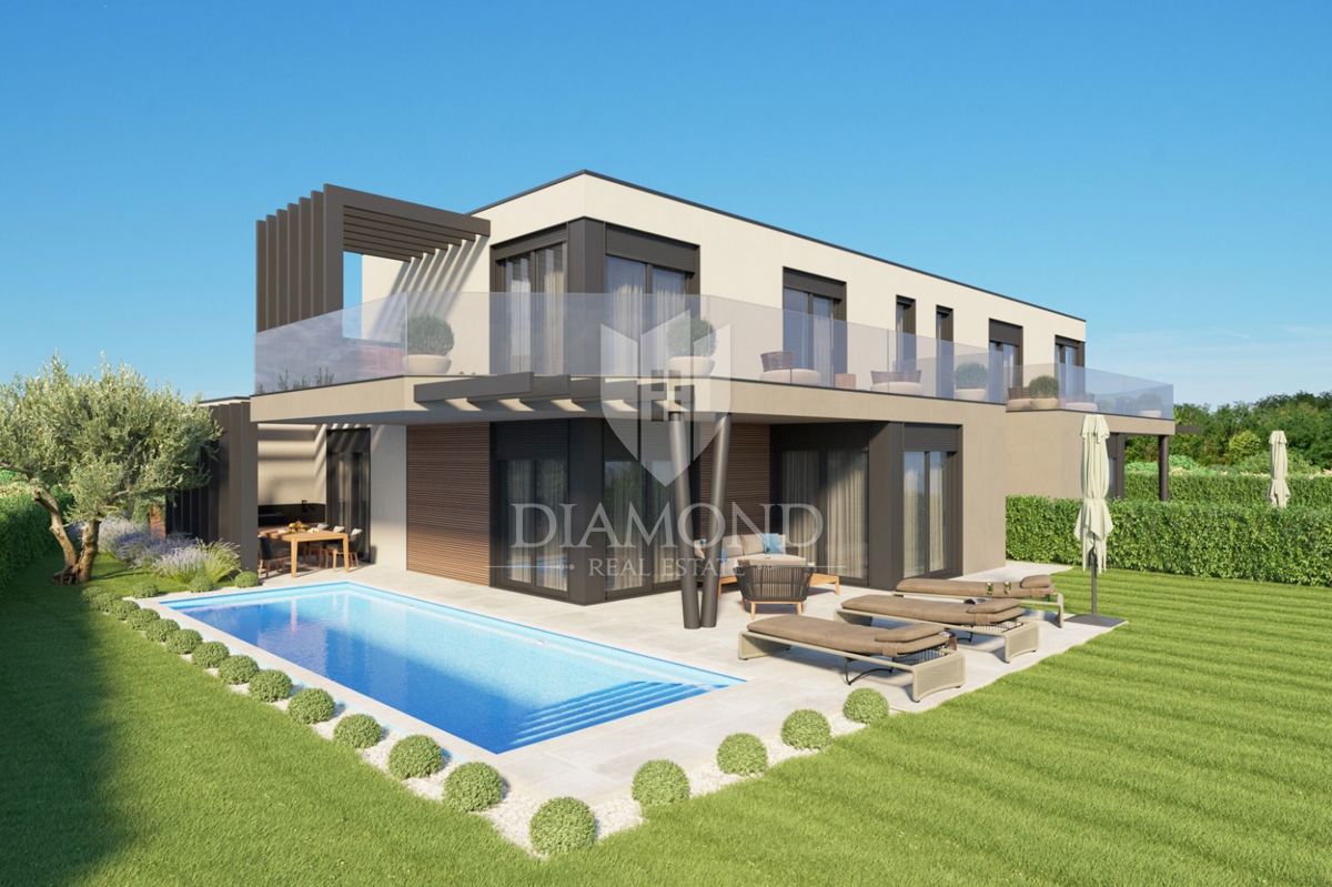 Poreč, okolica, moderna dvojna vila sa pogledom na more! Na zapadnoj obali Istre, okružena bujnom sredozemnom vegetacijom koja se stapa s maslinicima, vinogradima i njivama u ponudi imamo interesantnu vilu sa pogledom na more. Vila prostire na dvije et