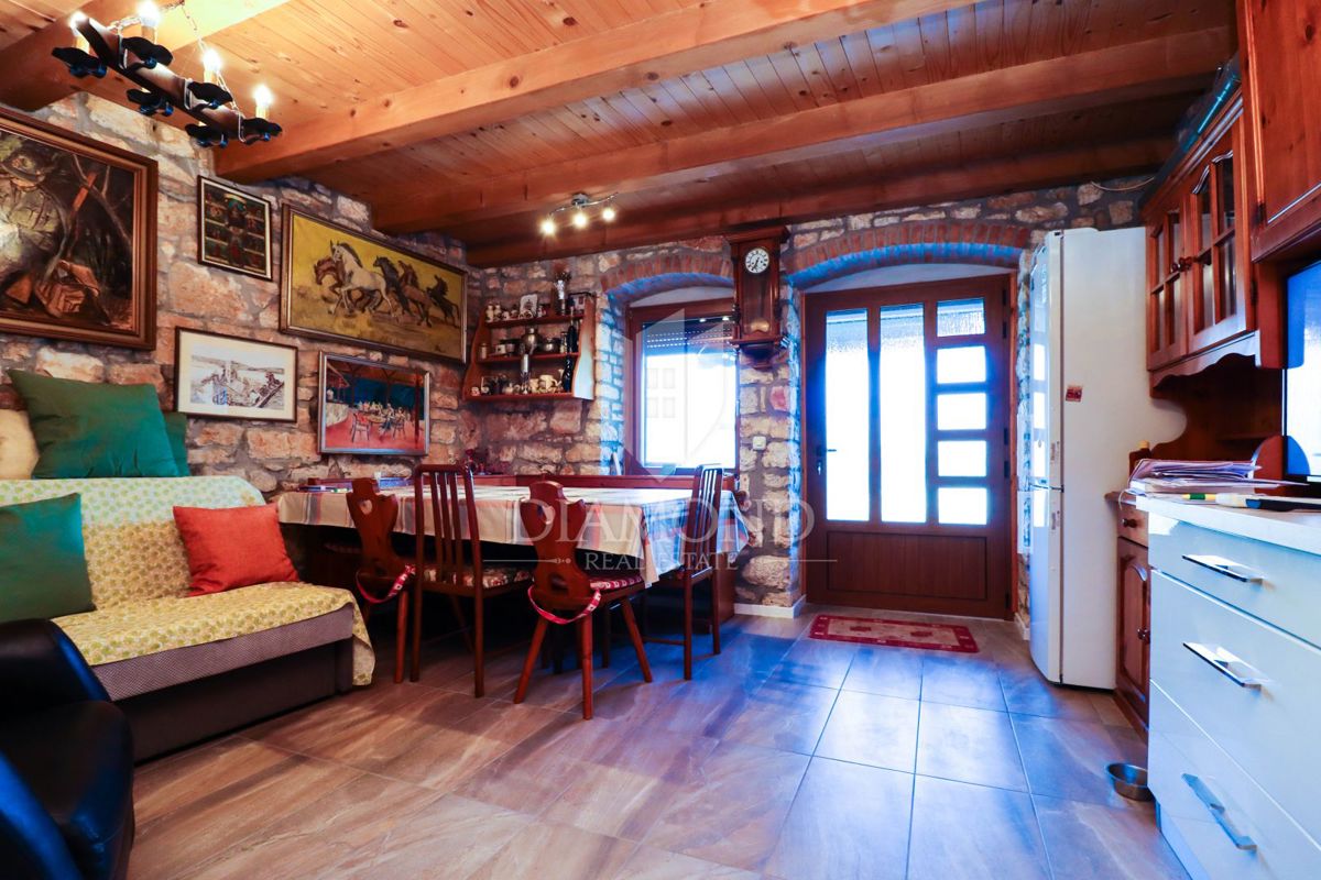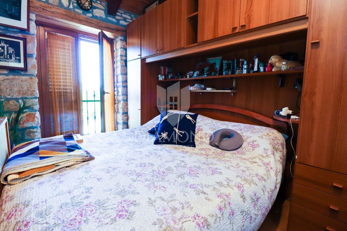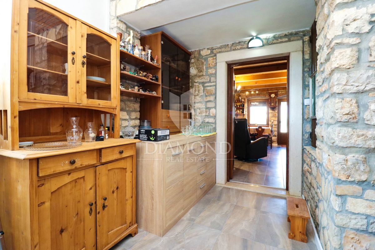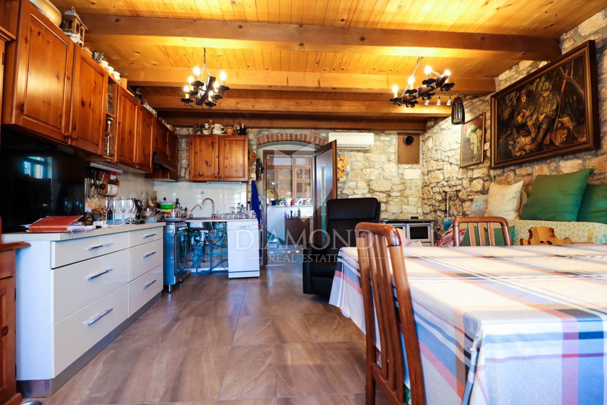 Poreč, okolica, simpatična kamena kuća u mirnom mjestu! U mirnom mjestu na samo 15 km udaljenosti od Poreča i plaža, a samo 12 km od Vrsara prodaje se ova simpatična kamena kuća sa dvorištem. Njezina ukupna površina iznosi 60 m2 sa dvorištem od 623 m2. P