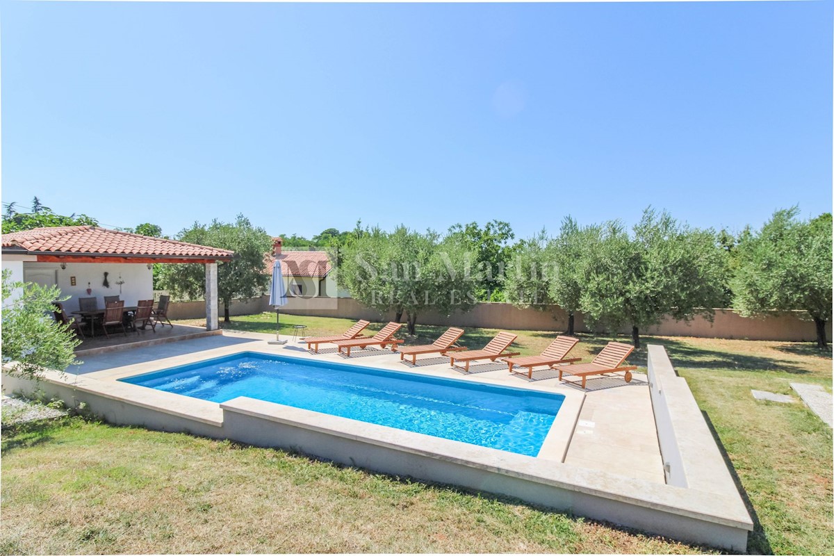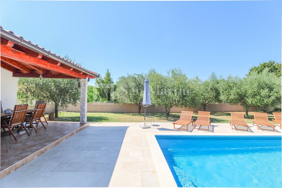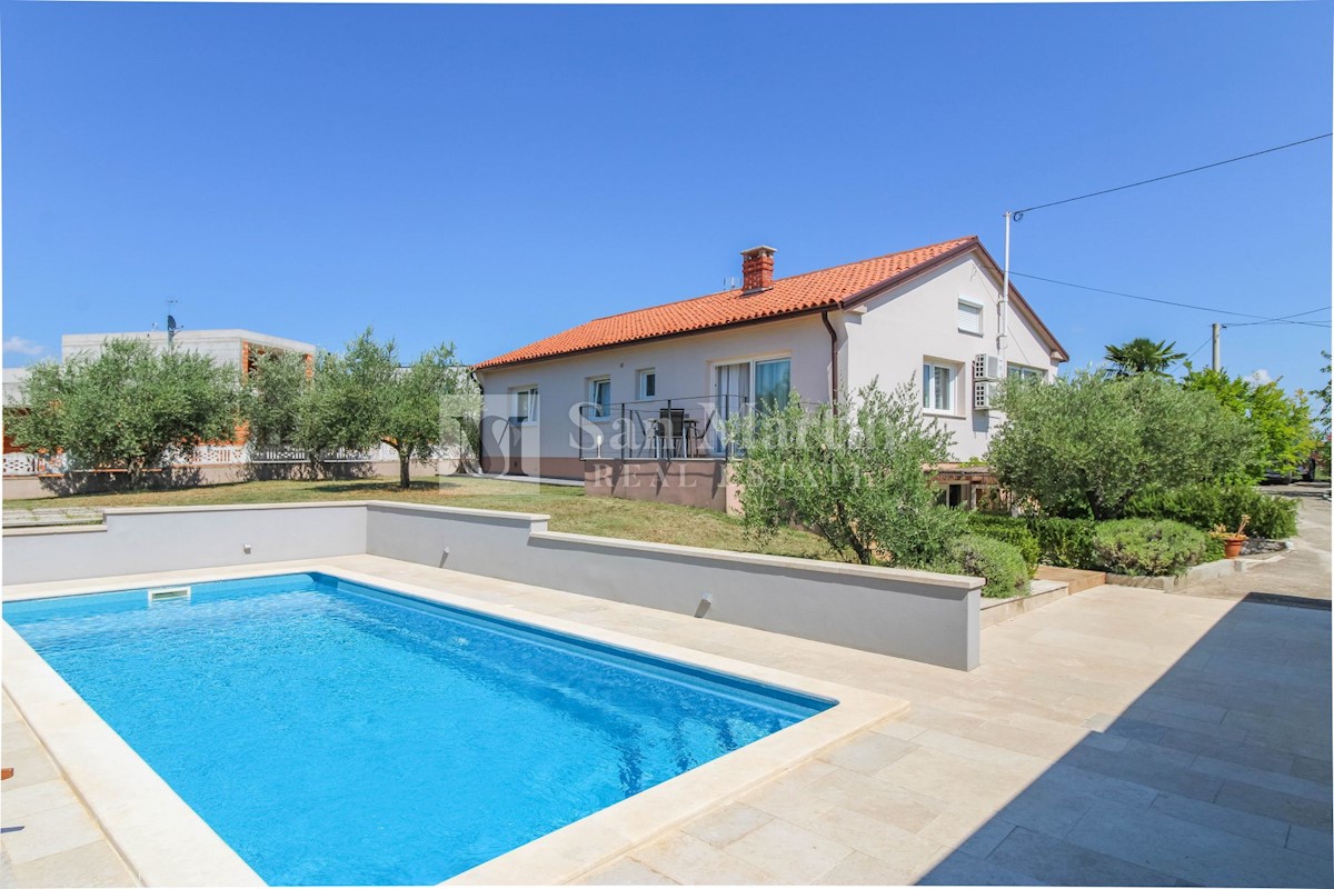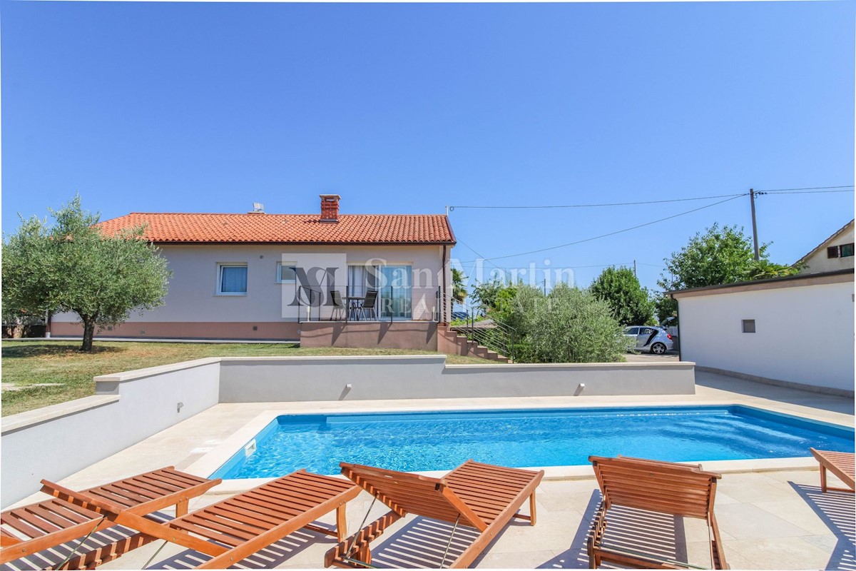 Poreč, prizemnica s bazenom na velikoj okućnici. U malom mjestu sa svim potrebnim sadržajima za život i zabavu, u mirnoj ulici nalazi se ova šarmantna prizemnica. Kuća od 150 m2 smjestila se na okućnici ukupne površine 1538 m2. Nekretnina se sastoji od
