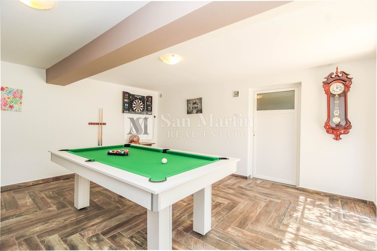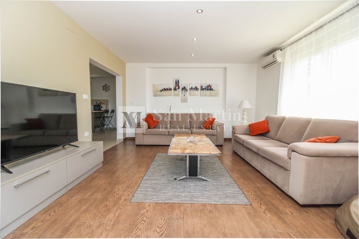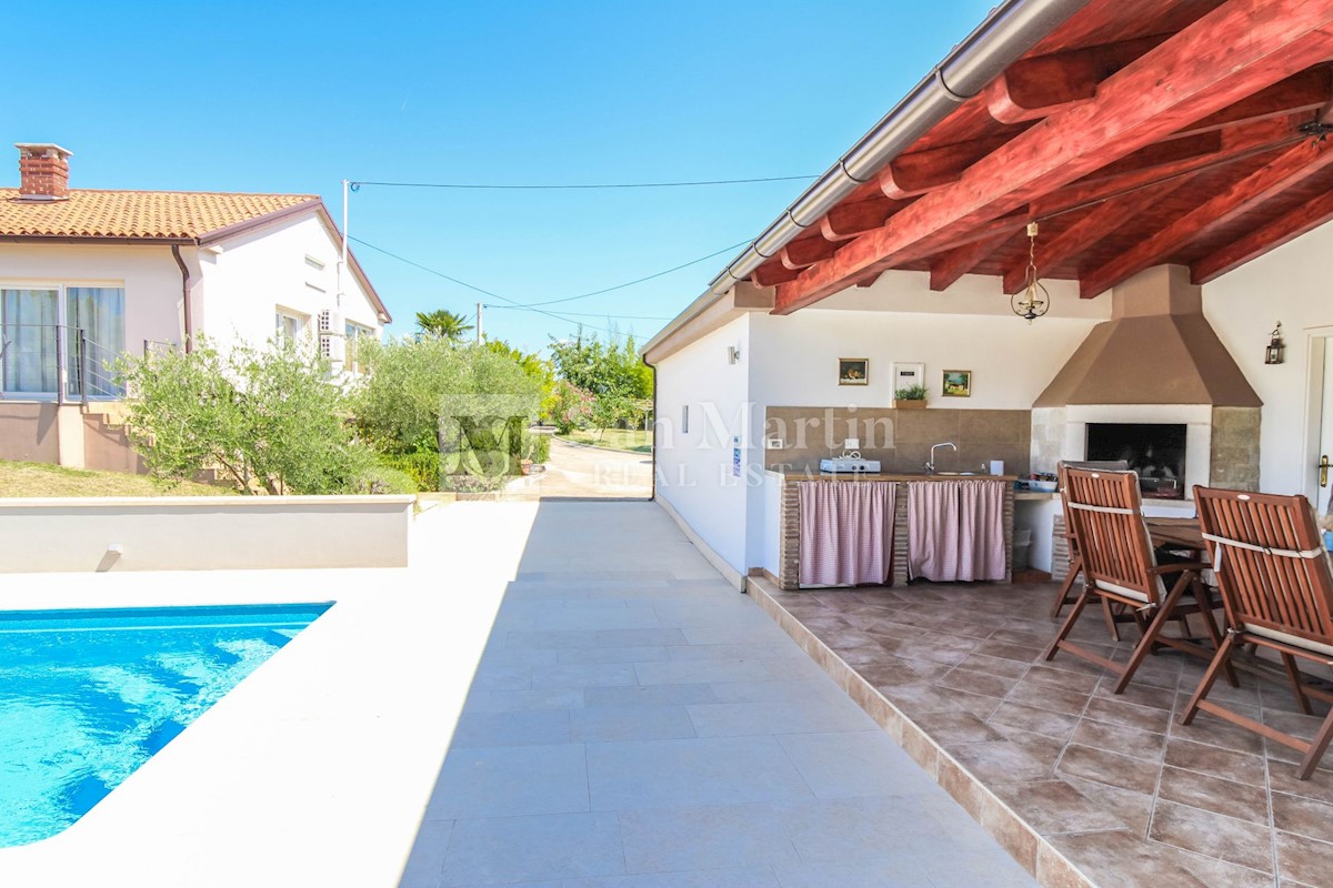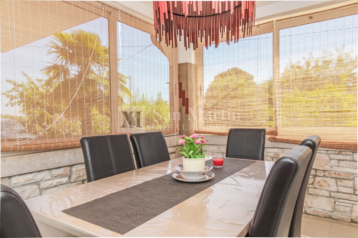 Poreč, prizemnica s bazenom na velikoj okućnici. U malom mjestu sa svim potrebnim sadržajima za život i zabavu, u mirnoj ulici nalazi se ova šarmantna prizemnica. Kuća od 150 m2 smjestila se na okućnici ukupne površine 1538 m2. Nekretnina se sastoji od