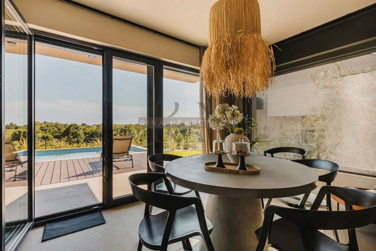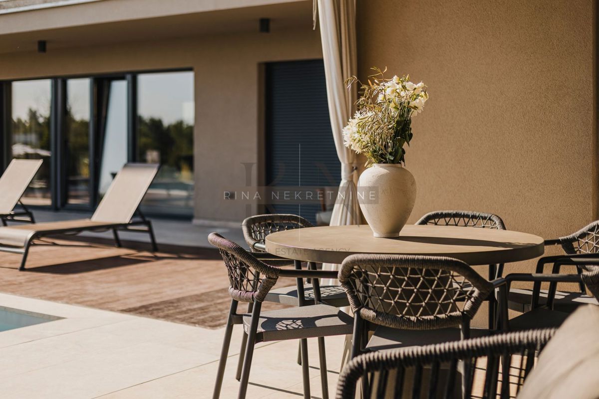 ISTRA - TAR / VABRIGA L U X U Z N A V I L L A: Na izuzetnom mjestu sa pogledom na zelenilo u kompletnom miru. Smještena na svega 800m od YACHT marine i plaže u rekonstrukciji. Okružena je samo urbanim zgradicama i exkluzivnim villama u izuzetno HIGH