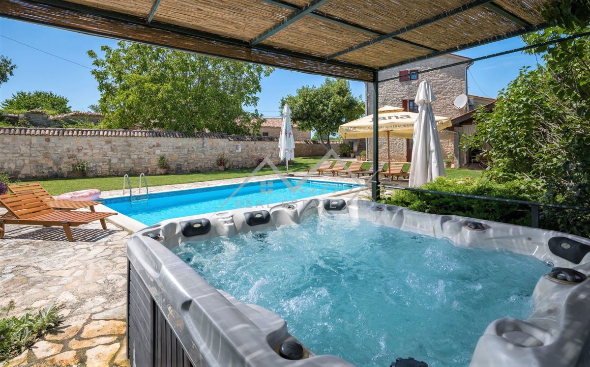 Poreč okolica - Kamena istarska vila s bazenom na prostranom imanju! Smještena u mirnom i šarmantnom malom selu blizu Poreča, ova prekrasna istarska vila s bazenom, koja se prostire na ukupnoj površini od 200 m2, nalazi se na prostranoj okućnice površine