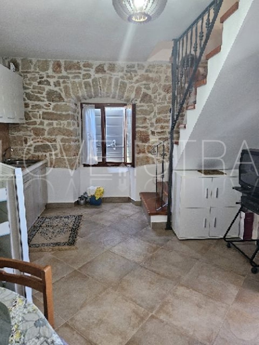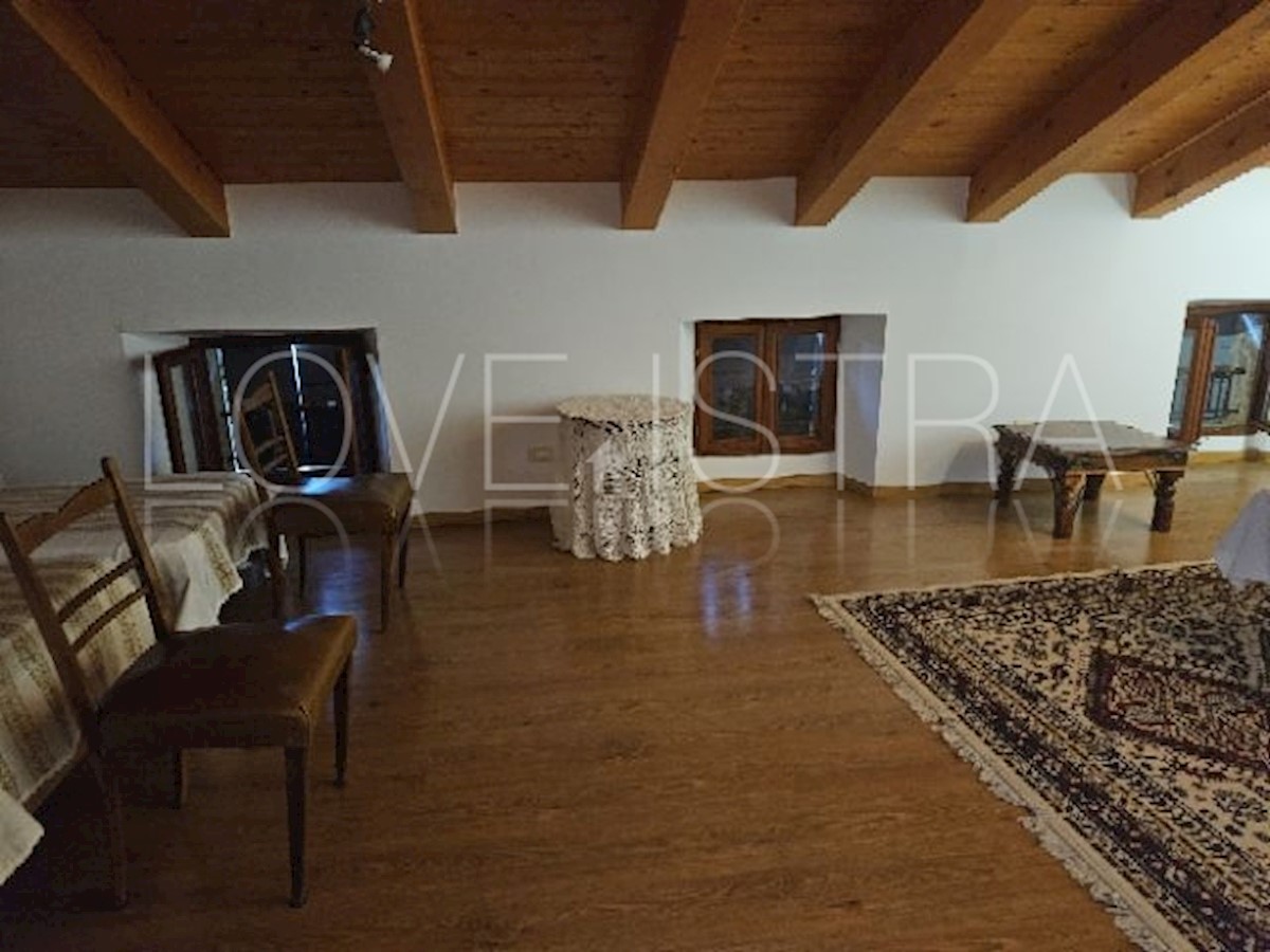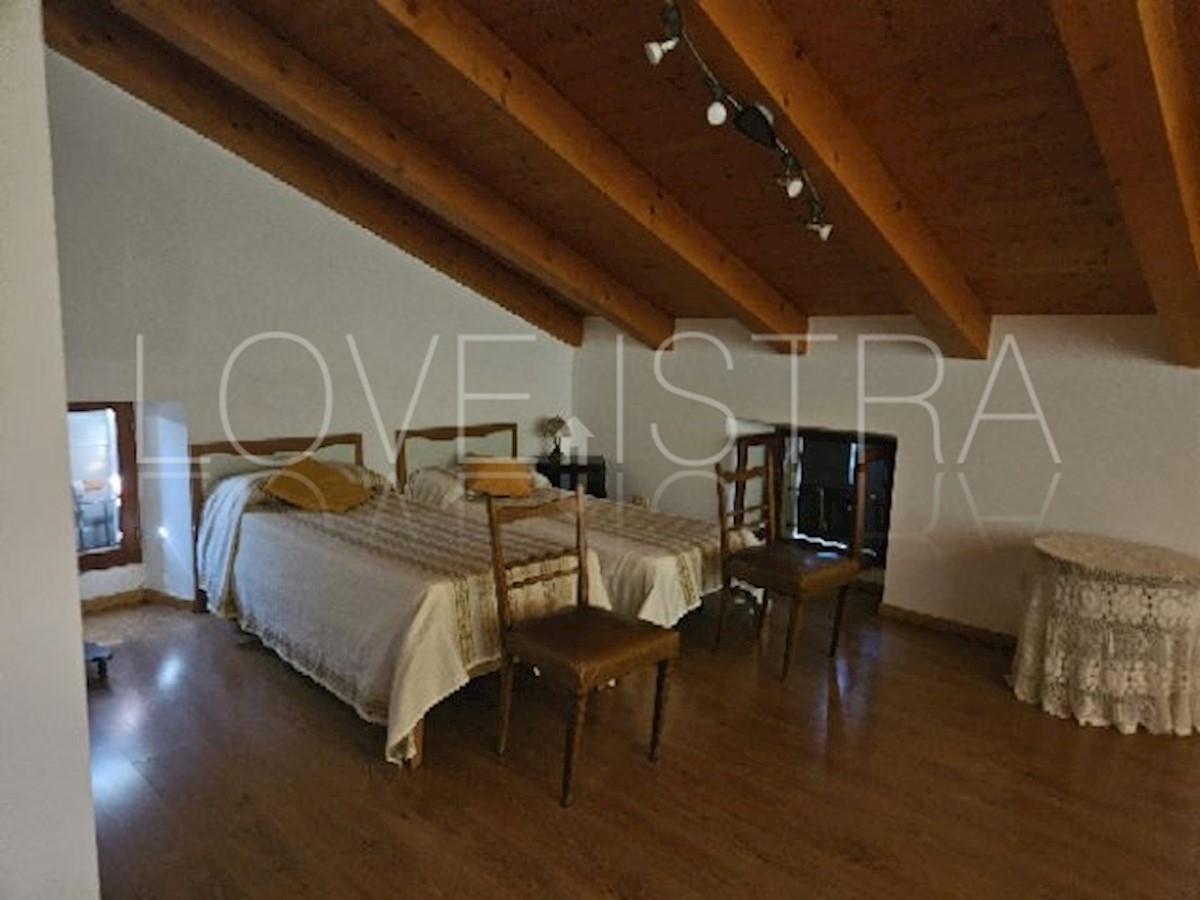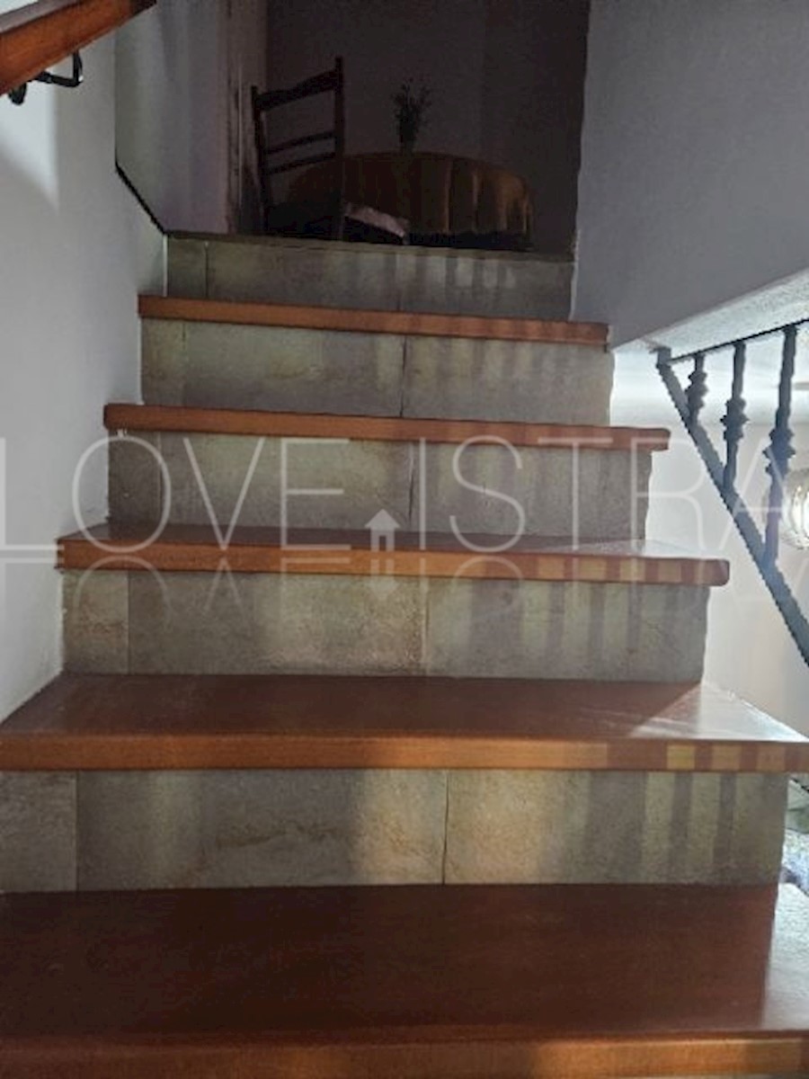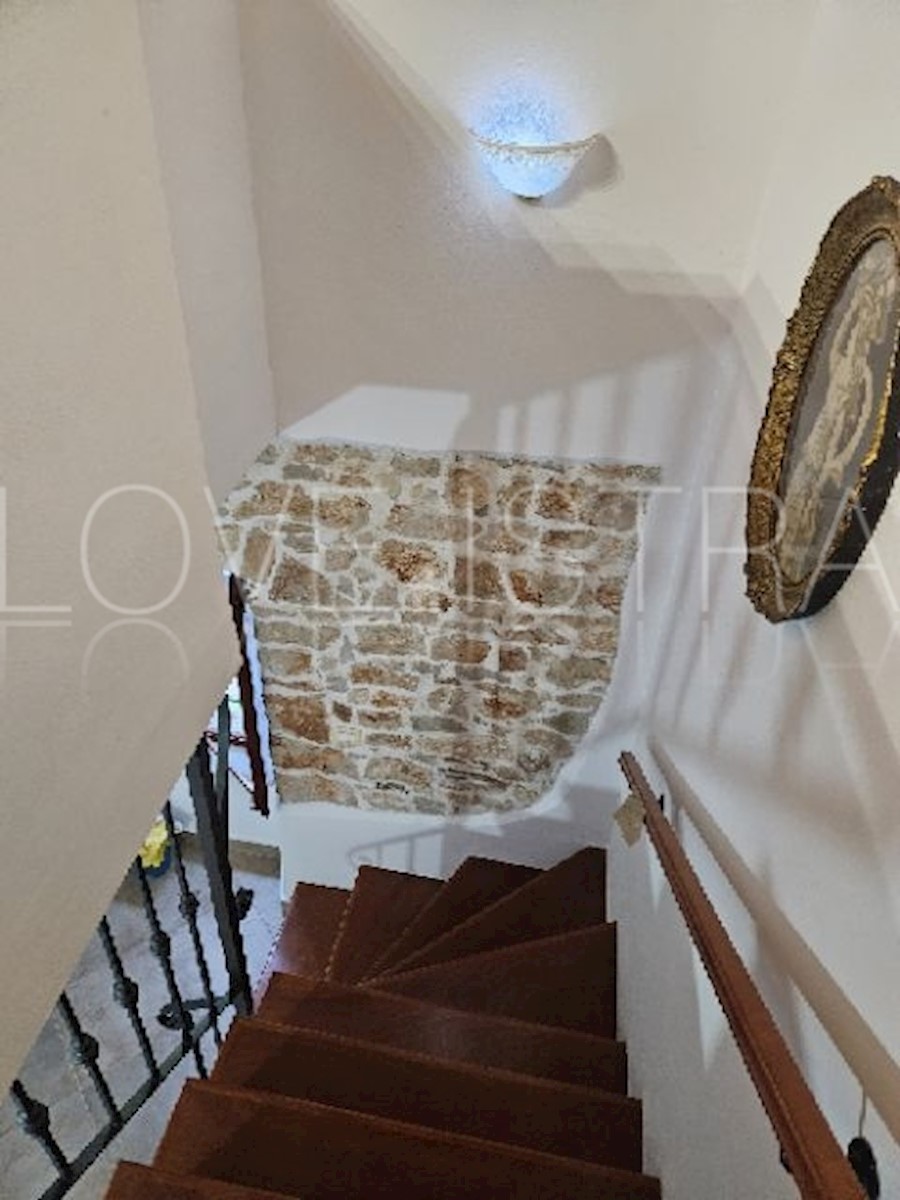 Kuća na tri etaže , u prizemlju je stan sa kaminom i jednom spavaćom sobom, kupatilom , kuhinjom , blagovaonom i dnevnim boravkom. Ulaskom s glavnog ulaza, vanjskim stepenicama se ide na prvi kat koji se sastoji od velikog dnevnog boravka-kuhinje, spavaće