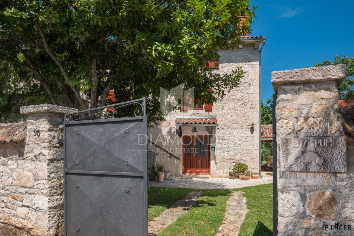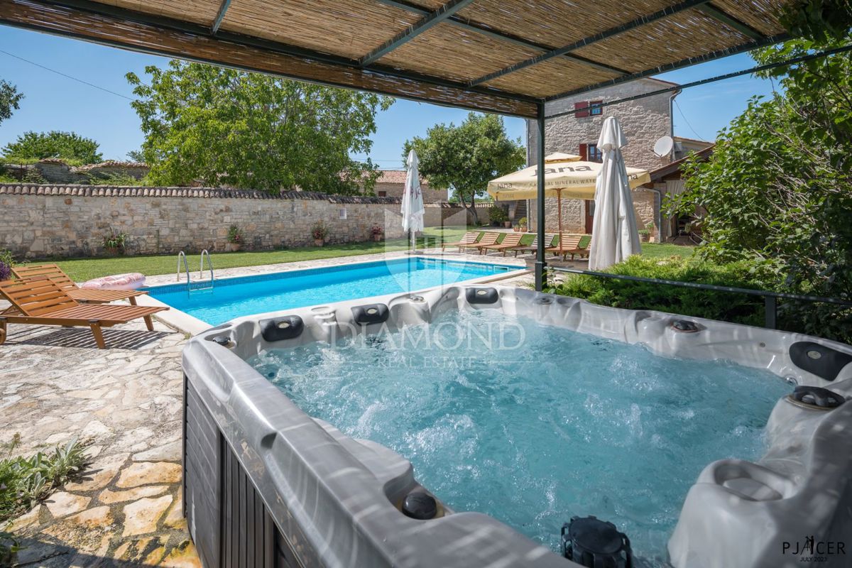 Poreč, okolica, autohtona vila sa prostranom okućnicom! U manjem istarskom mjestu udaljenom od grada Poreča i mora 20 km smjestila e ova autohtona vila sa bazenom i prostranom okućnicom. Vila je smještena na parceli od 6362 m2 i njena površina iznosi 19
