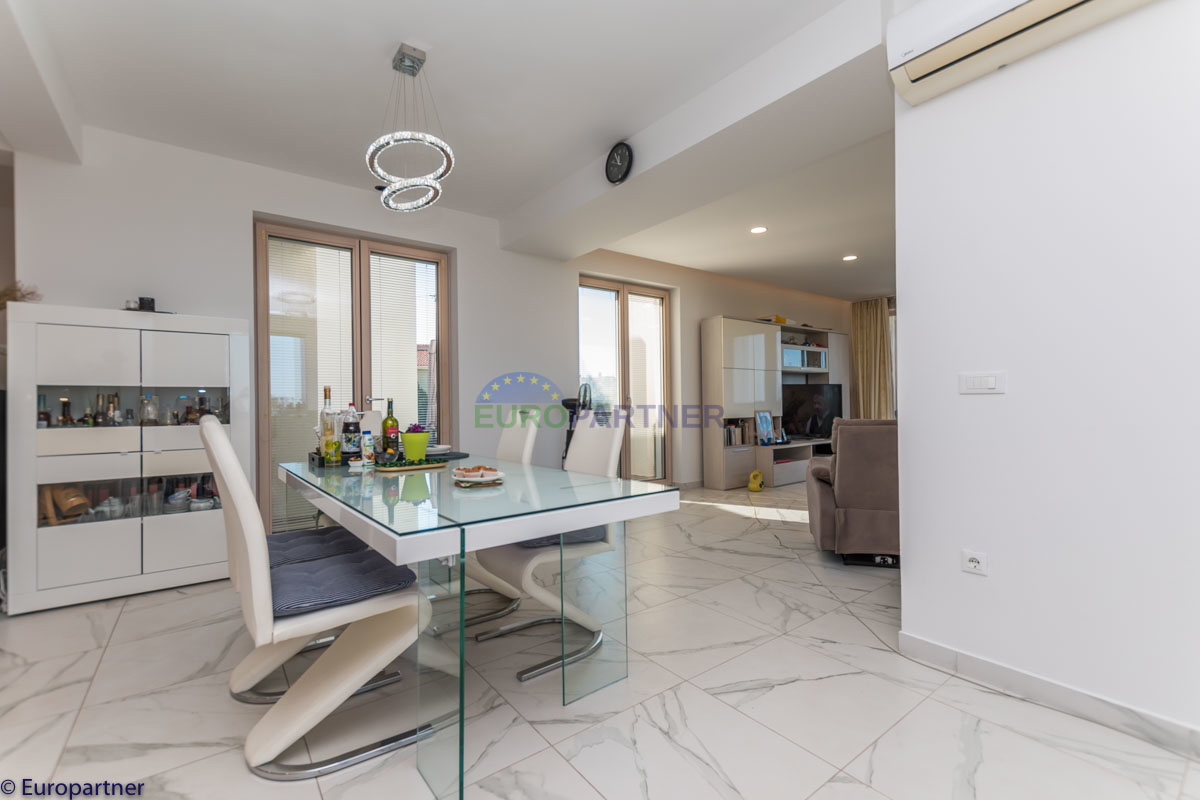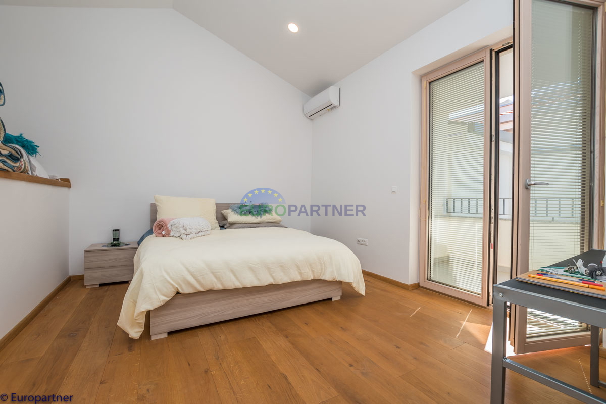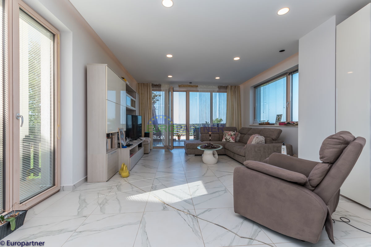 Ova jedinstvena moderna vila koncipirana je na načinda se sastoji od više stambenih cjelina iz kojih se pruža zaista prekrasan pogled na more. Vila se prostire na 570 m2 I 1360m2 parcele. Budući da je tehnologija danas sastavni dio našeg svakodnevnog živ