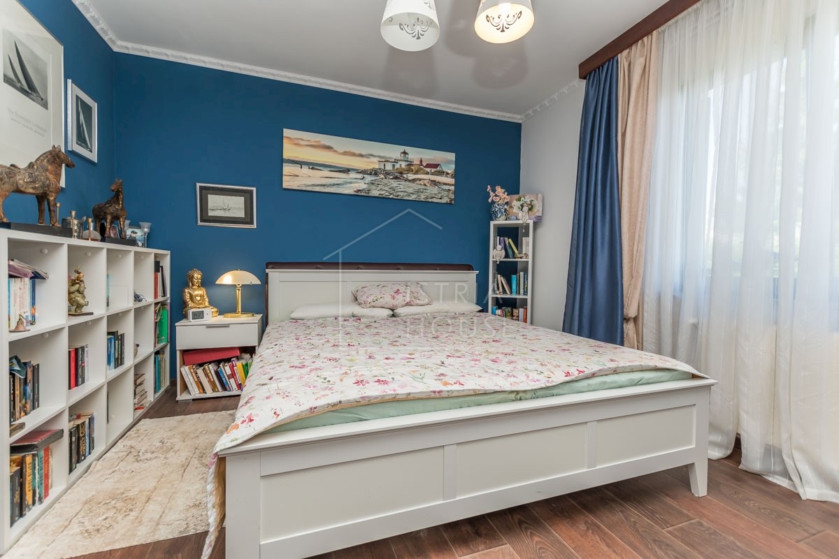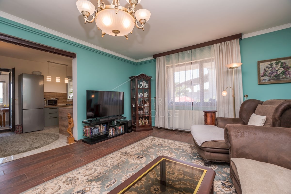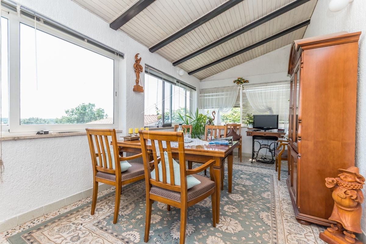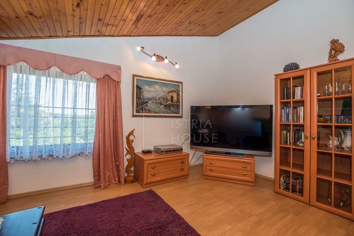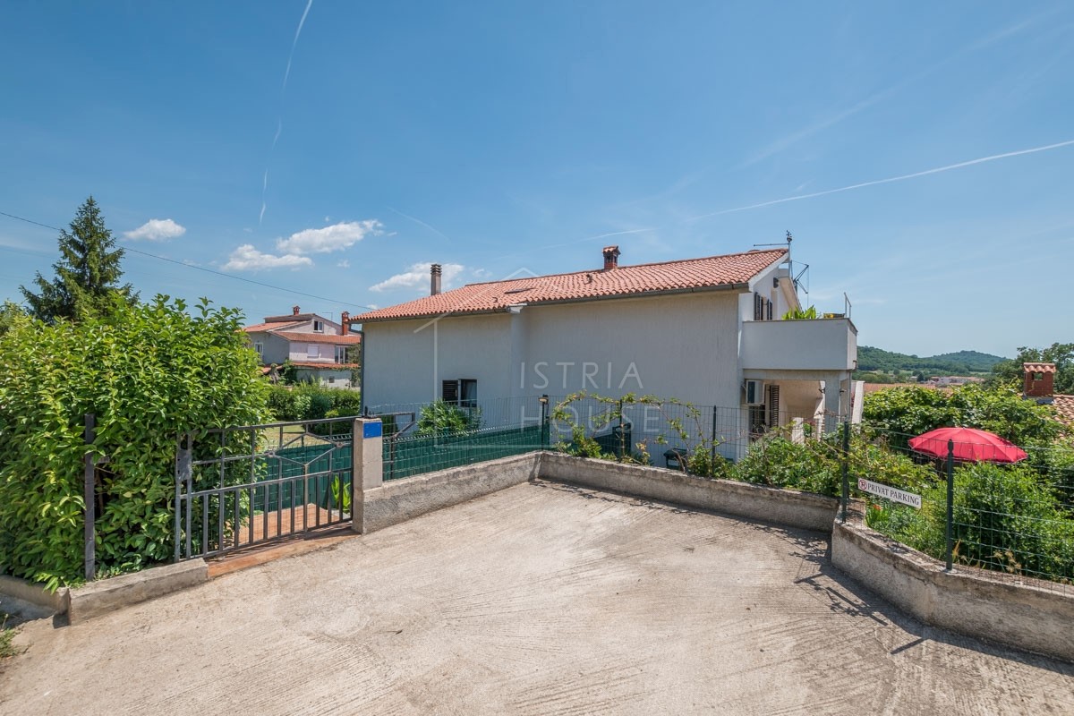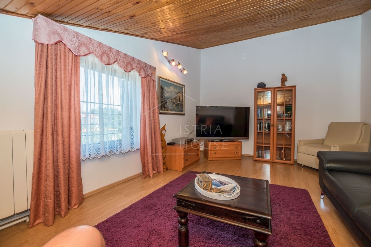 Istra, Poreč, okolica Prodaje se kuća s dva stana na 5 km od centra grada Poreča, mora i plaža. Kuća se nalazi na zemljištu od 857 m2 i netto kvadrature od 202 m2. Kuća se sastoji od dva stana, garaže od 31 m2 sa Wc-om i konobom. U prizemlju se nalazi s