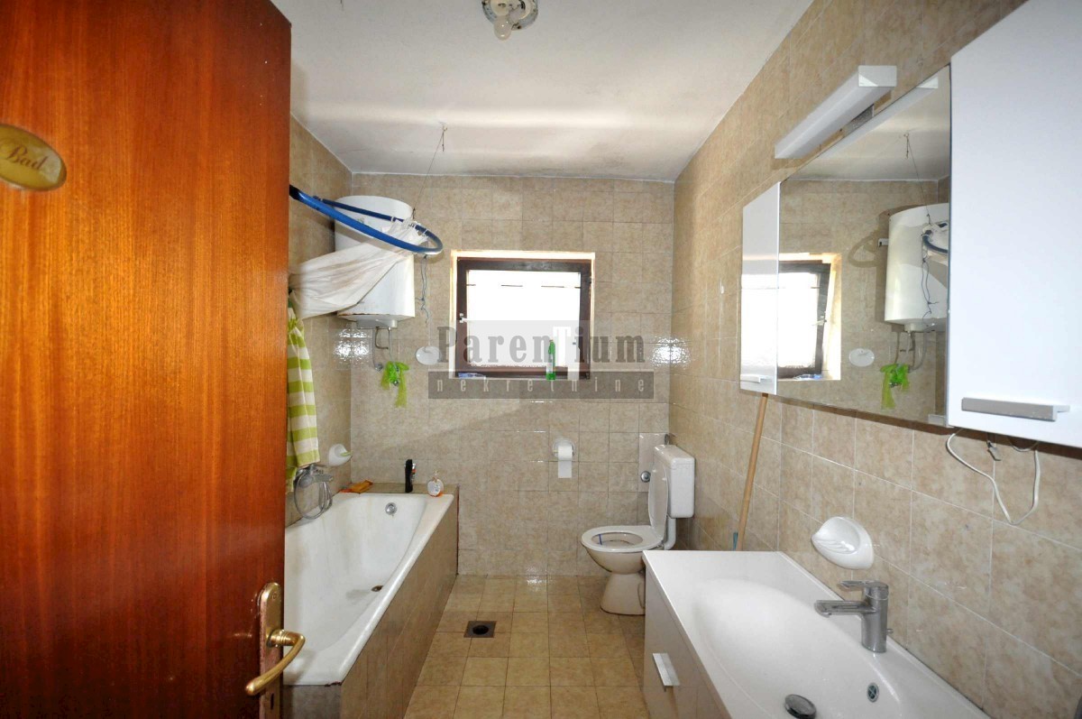 Poreč, Prodaje se kuća na tri etaže. Na prvom i drugom katu nalaze se dva stana, koji se sastoje od predprostora, tri spavaće sobe, kupaonice, kupatila i velikog dnevnog boravka sa kuhinjom, manja ostava i dvije terase. U suterenu se nalaze tri prostorij