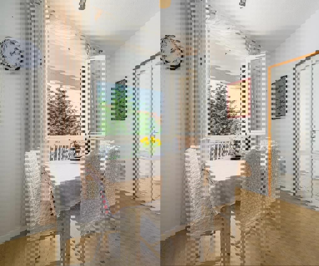 - Luksuzno stanovanje v 1. nadstropju s prostorno teraso, jacuzzijem in savno, ki se nahaja 5 km od prvih plaž in Poreča.Stanovanje ima 65 m2, obsega predsobo, 2 spalnici, 2 kopalnici, pralnico/shrambo ter prostorno kuhinjo z jedilnico
