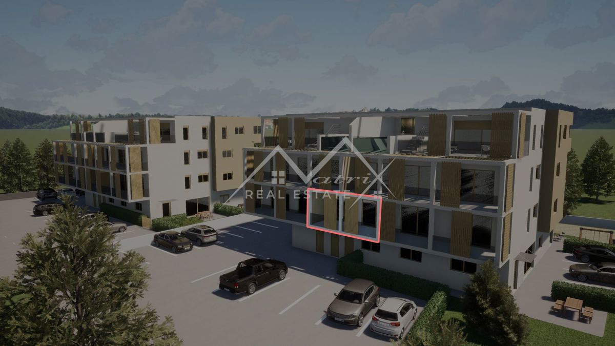 - Nepremičnina zavzema prvo nadstropje moderne zgradbe in se razprostira na skupni površini 65 m². Sestavlja se iz prostorne dnevne sobe z odprtim kuhinjskim prostorom in jedilnico, spalnice, kopalnice, hodnika ter pokrite terase. Stano