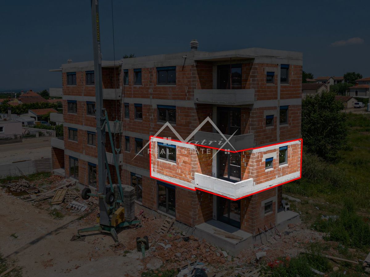 - Nepremičnina zavzema prvo nadstropje moderne zgradbe in se razprostira na skupni površini 80 m². Sestavlja se iz prostorne dnevne sobe z odprtim kuhinjskim prostorom in jedilnico, dveh udobnih spalnic, kopalnice, hodnika ter pokrite t