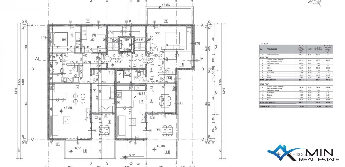 Na mirni lokaciji v Vabrigi je naprodaj stanovanje v gradnji. Stanovanje se nahaja v 3. nadstropju stavbe s skupno 10 stanovanji, stavba pa ima dvigalo. Stanovanje meri 89,34 m2 in obsega predsobo, shrambo, kopalnico, 3 spalnice, ložo, pokrito teraso in o