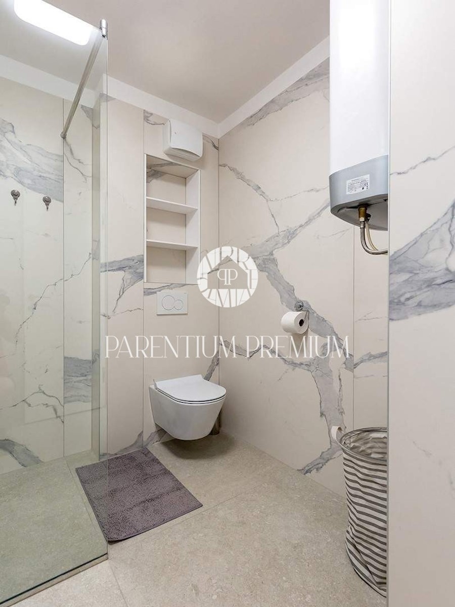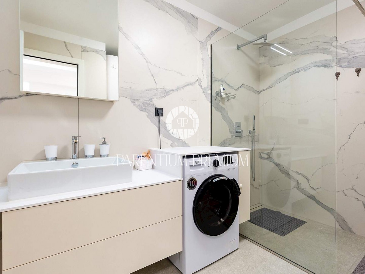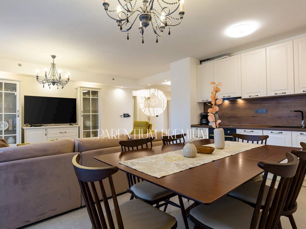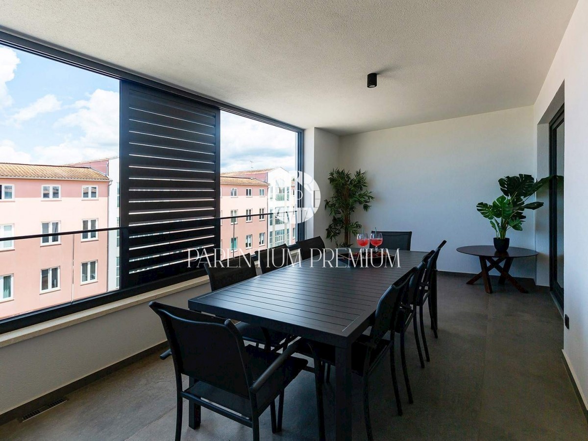 Istra, Poreč V centru mesta in v bližini čudovitih poreških plaž se prodaja to moderno in dobro opremljeno trisobno stanovanje v tretjem nadstropju ekskluzivne stavbe s pogledom na morje, dvigalom in podzemno garažo. Stanovanje obsega predsobo, kuhinjo