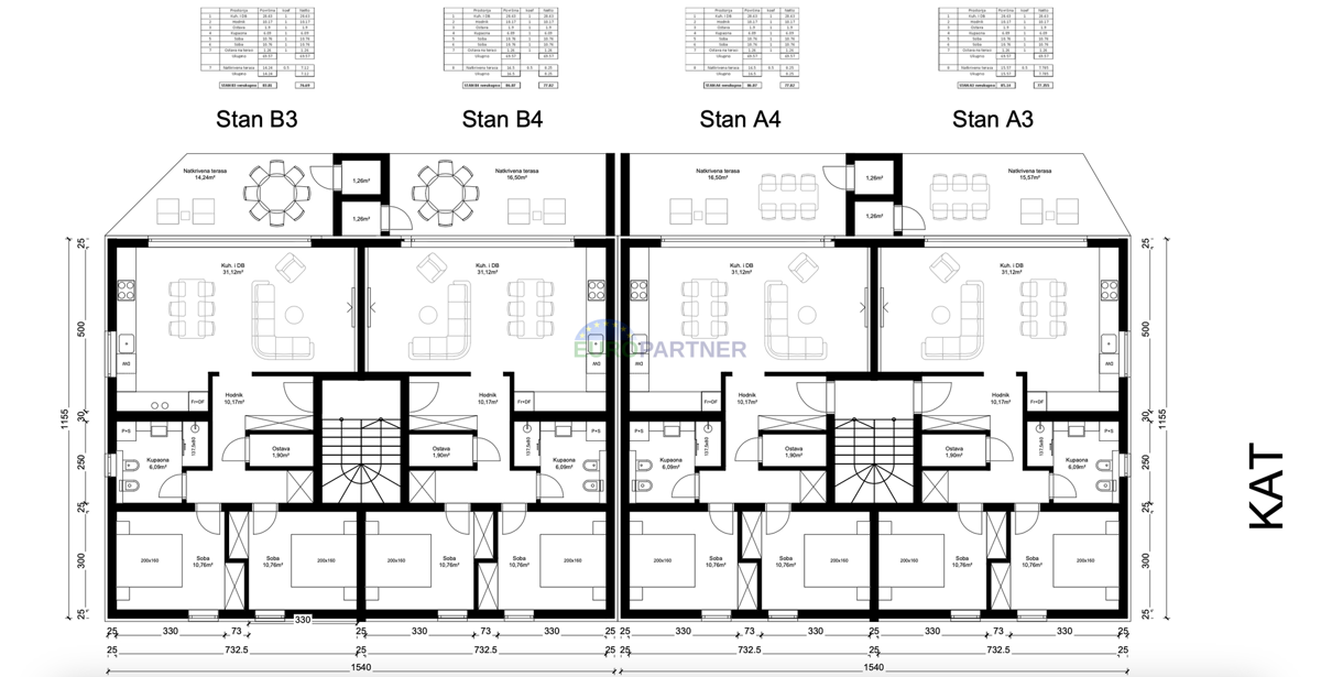 Poreč, okolica, novo dvosobno stanovanje Stanovanje se nahaja v prvem nadstropju moderne novogradnje, obsega 77,82 m2 površine in je skrbno zasnovano tako, da zagotavlja udoben in funkcionalen bivalni prostor. Sestavljen je iz predsobe, ki vodi v prostor