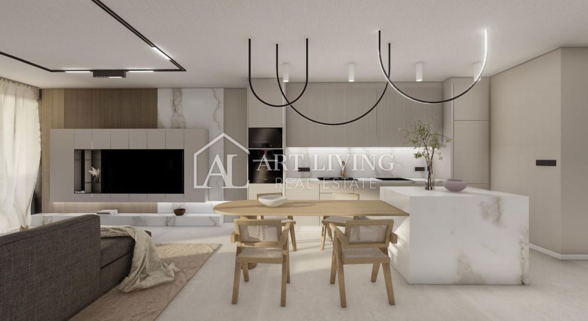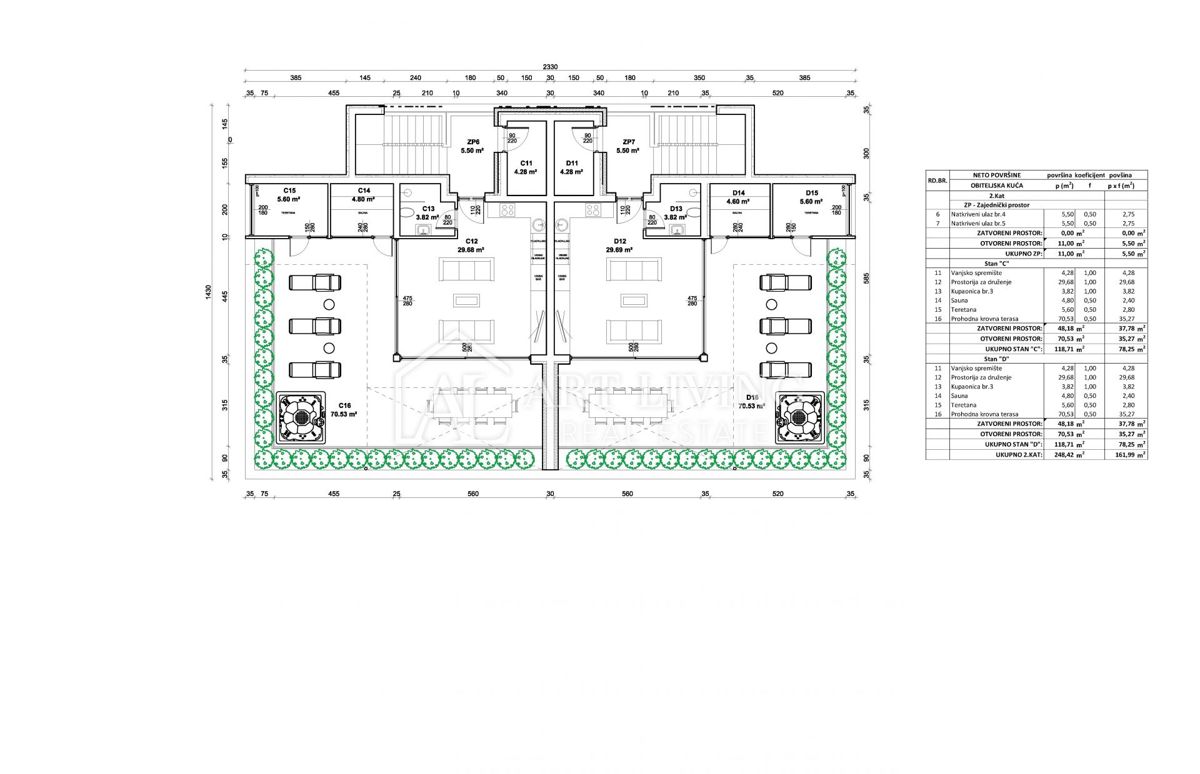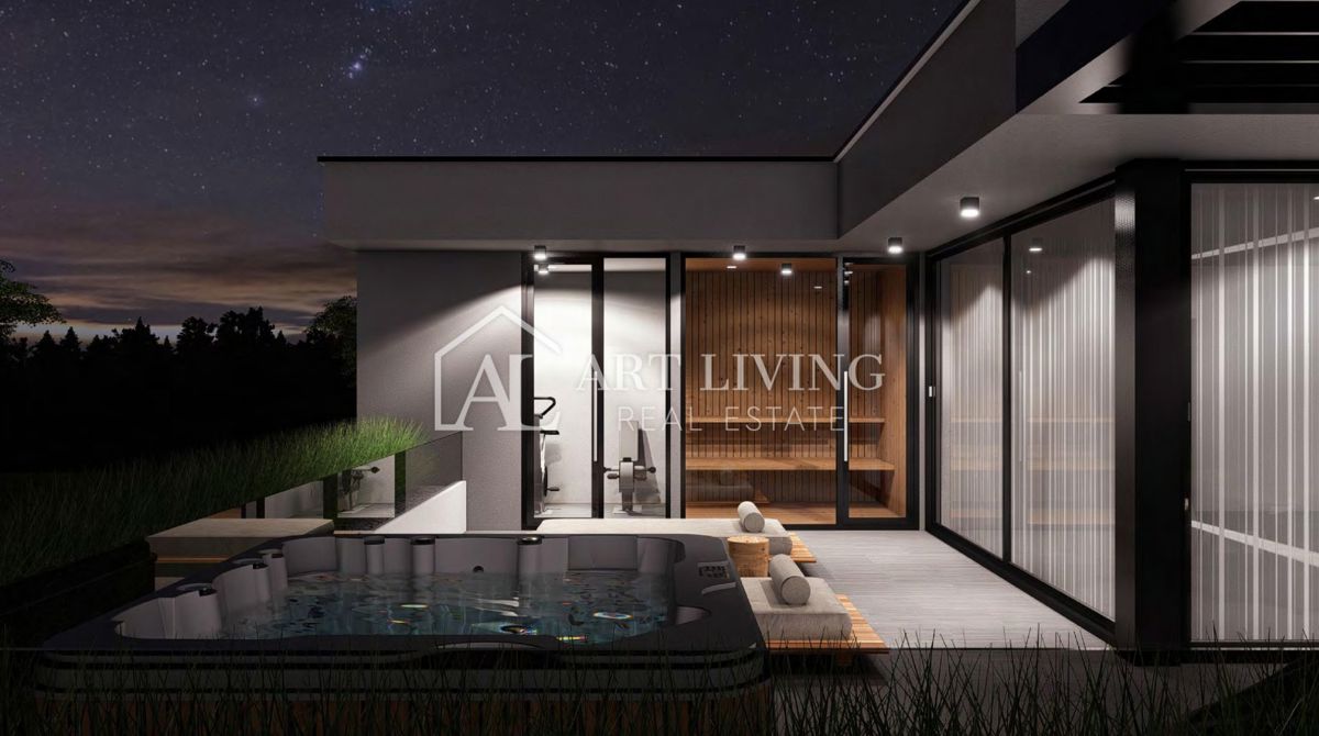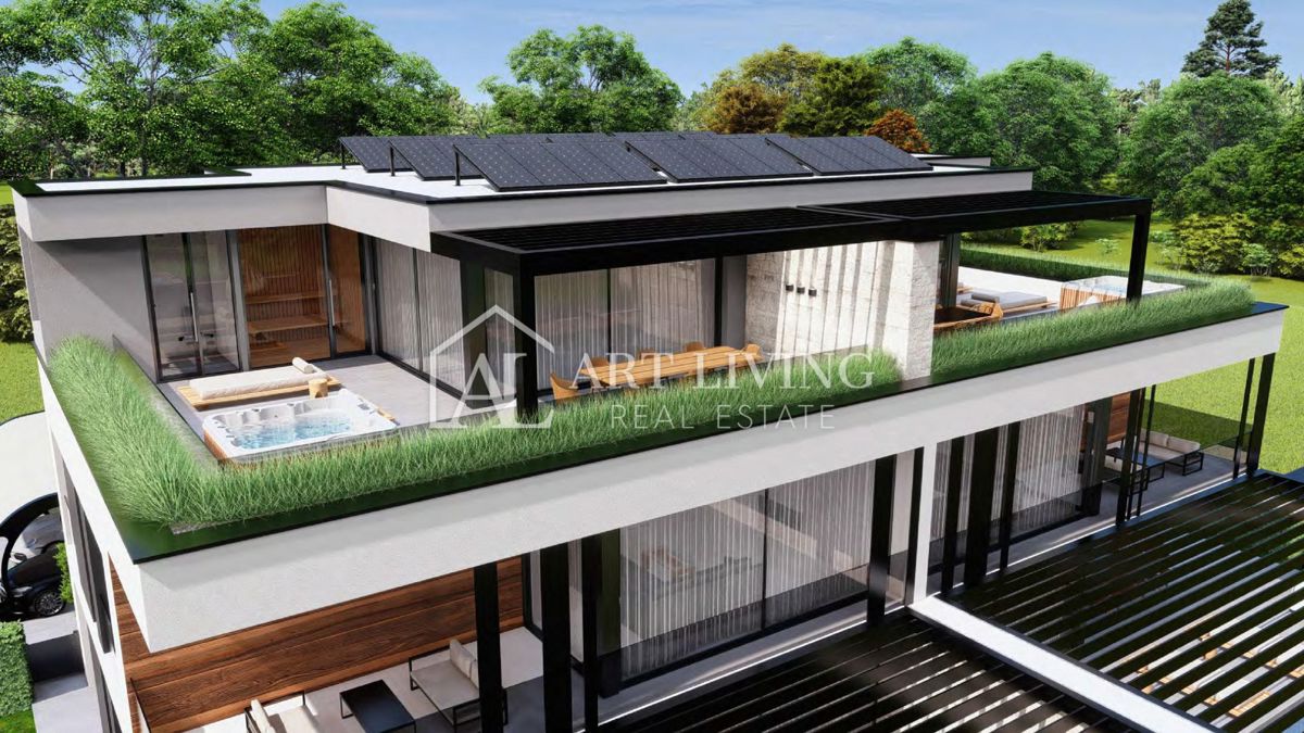 Istra, Poreč, okolica Stanovanje D Luksuzno dvonadstropno stanovanje s strešno teraso modernega dizajna je naprodaj v novi stavbi, na mirni in lepi lokaciji, le 7 km od mesta Poreč in 1,5 km od morja in urejenih plaž. Stanovanje se nahaja v prvem nadst