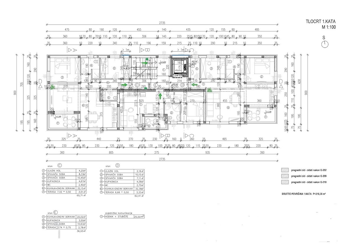 Okolica Poreča, cca. 3 km od morja, novi apartmaji v gradnjiV kraju z vso potrebno vsebino, supermarketi, lekarna, šola, vrtec in vse ostalo.Objekt ima 11 stanovanj2 v pritličju in po 3 stanovanja v 1. in 2. nadstropju. in 3. nadstropje. V celotnem stanov