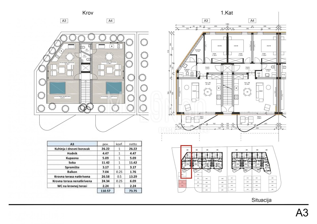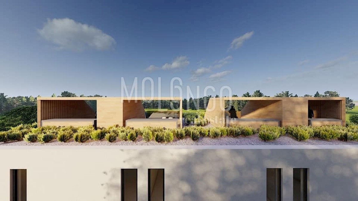 ISTRA, POREČ, OKOLICA - Čudovito stanovanje s strešno teraso, blizu morja V bližini Poreča, v mirnem mestecu 3 km od morja in 9 km od mesta Poreč, se prodaja stanovanje v prvem nadstropju stanovanjske stavbe. Apartma A3 se nahaja v nadstropju moderne no
