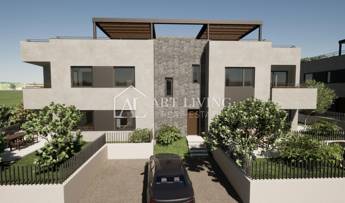 Istra, Poreč Stavba B – Stanovanje A Na izjemno atraktivni lokaciji, le 2 km od centra Poreča in 1 km od morja in urejenih plaž, se v pritličju manjše moderne stanovanjske stavbe s štirimi stanovanjskimi enotami prodaja to luksuzno stanovanje. Skupna n