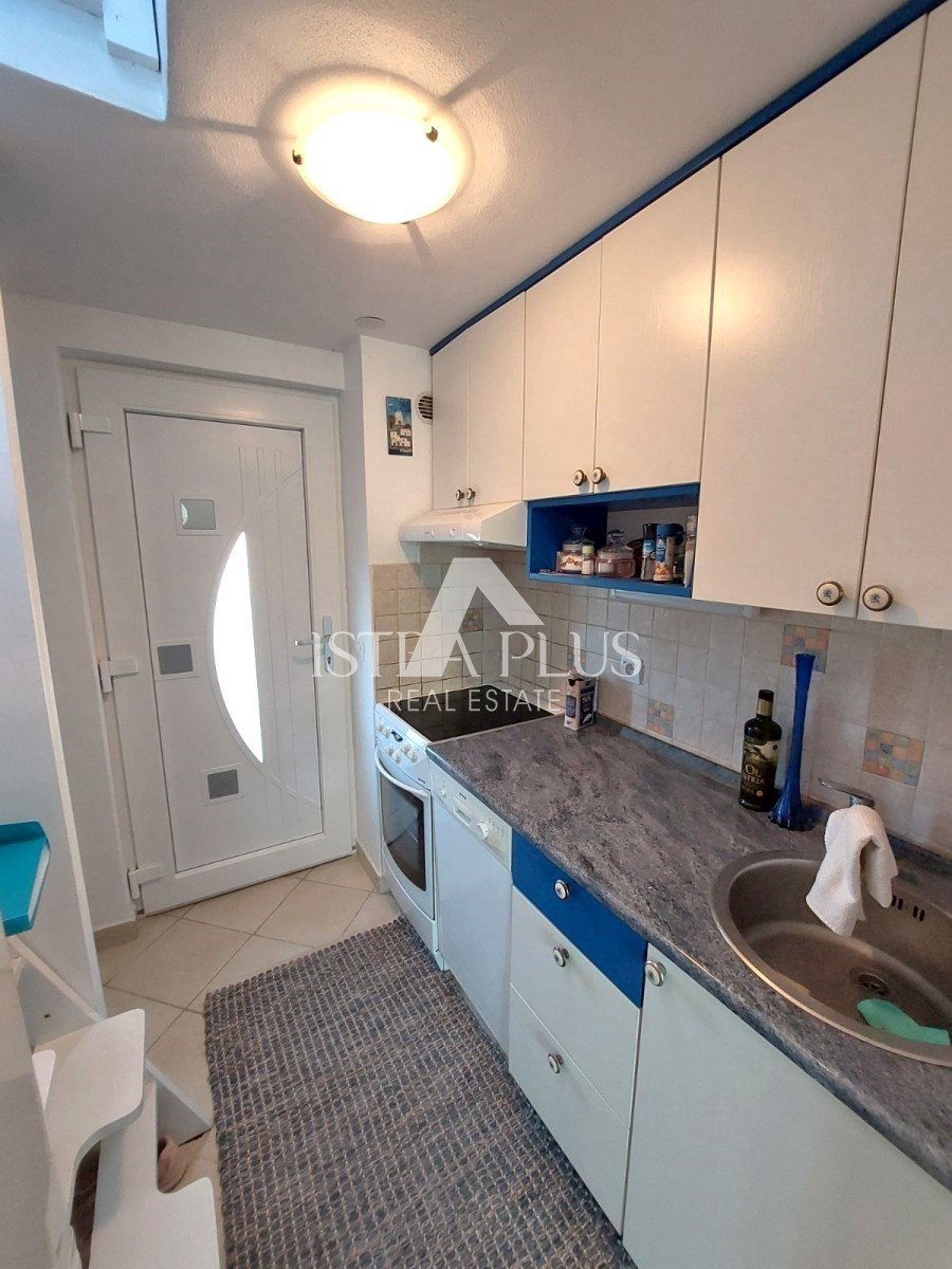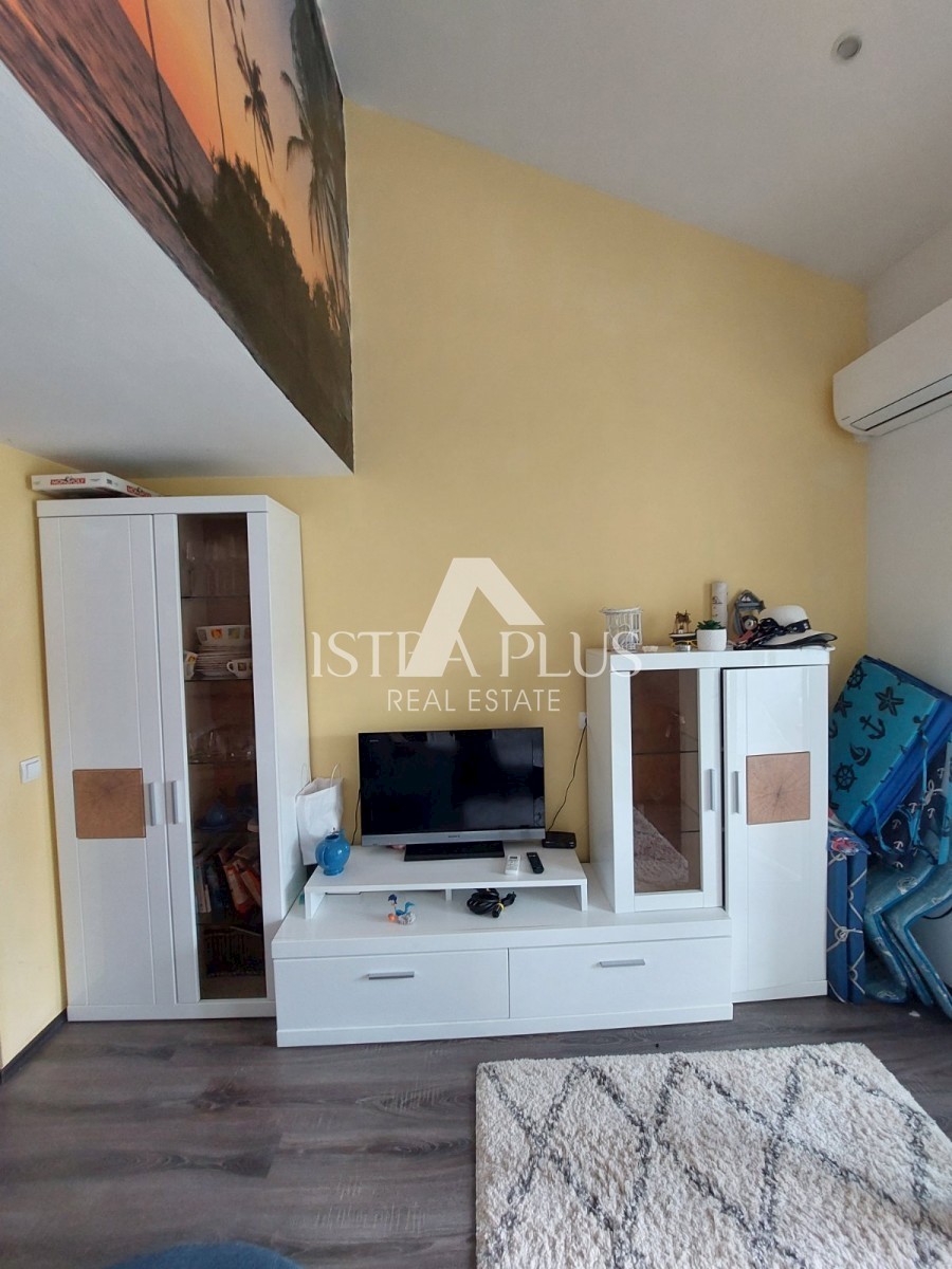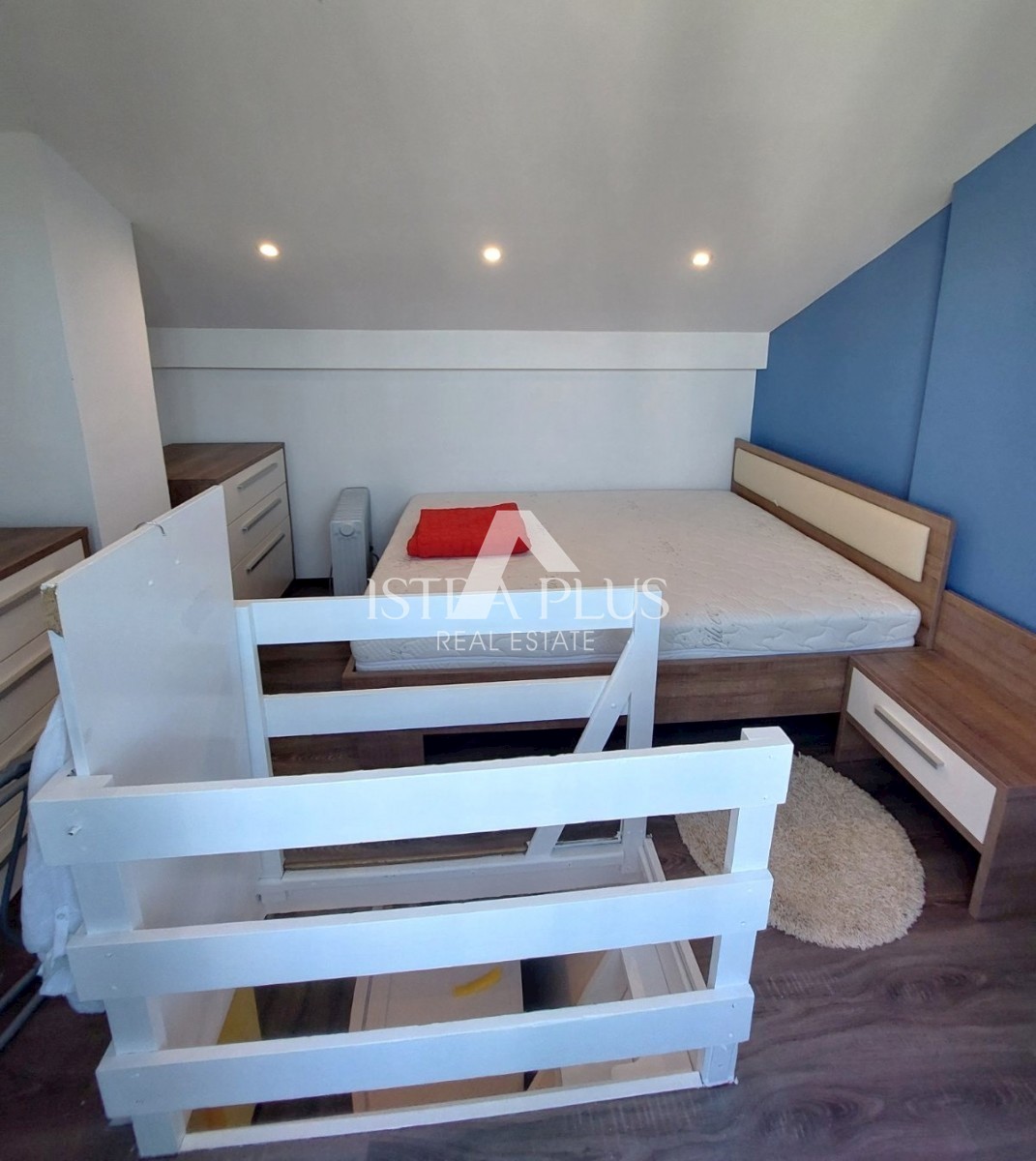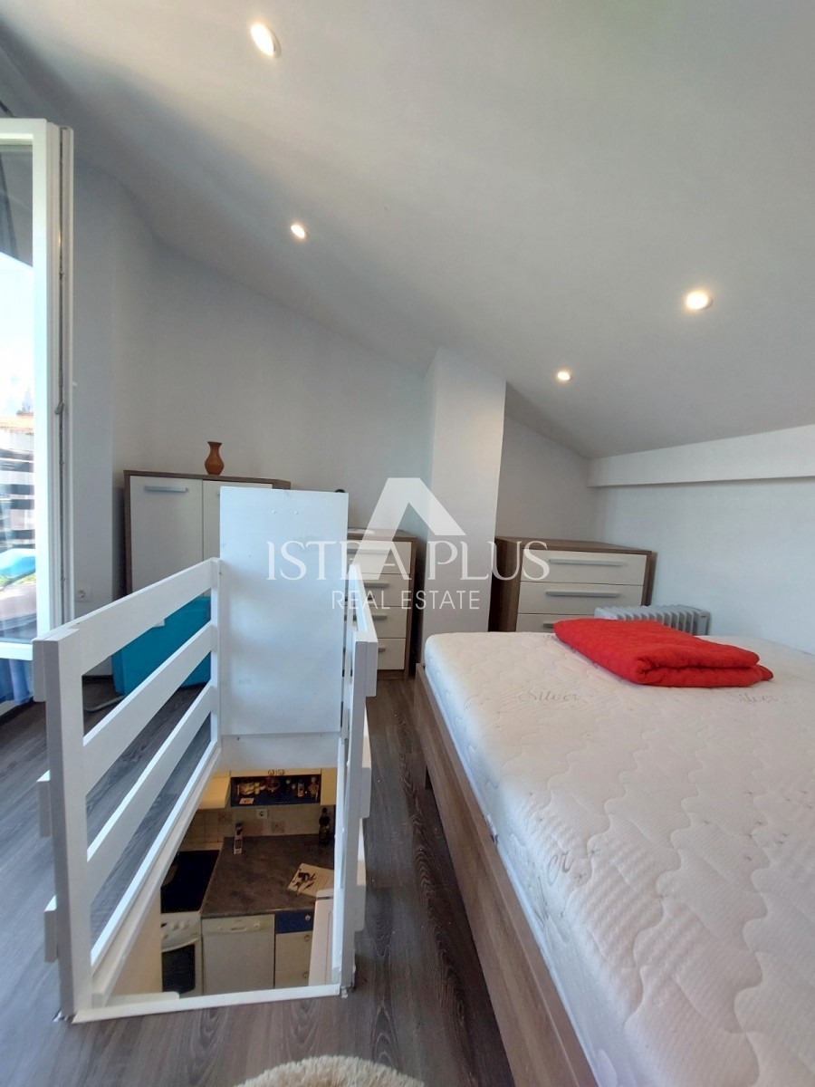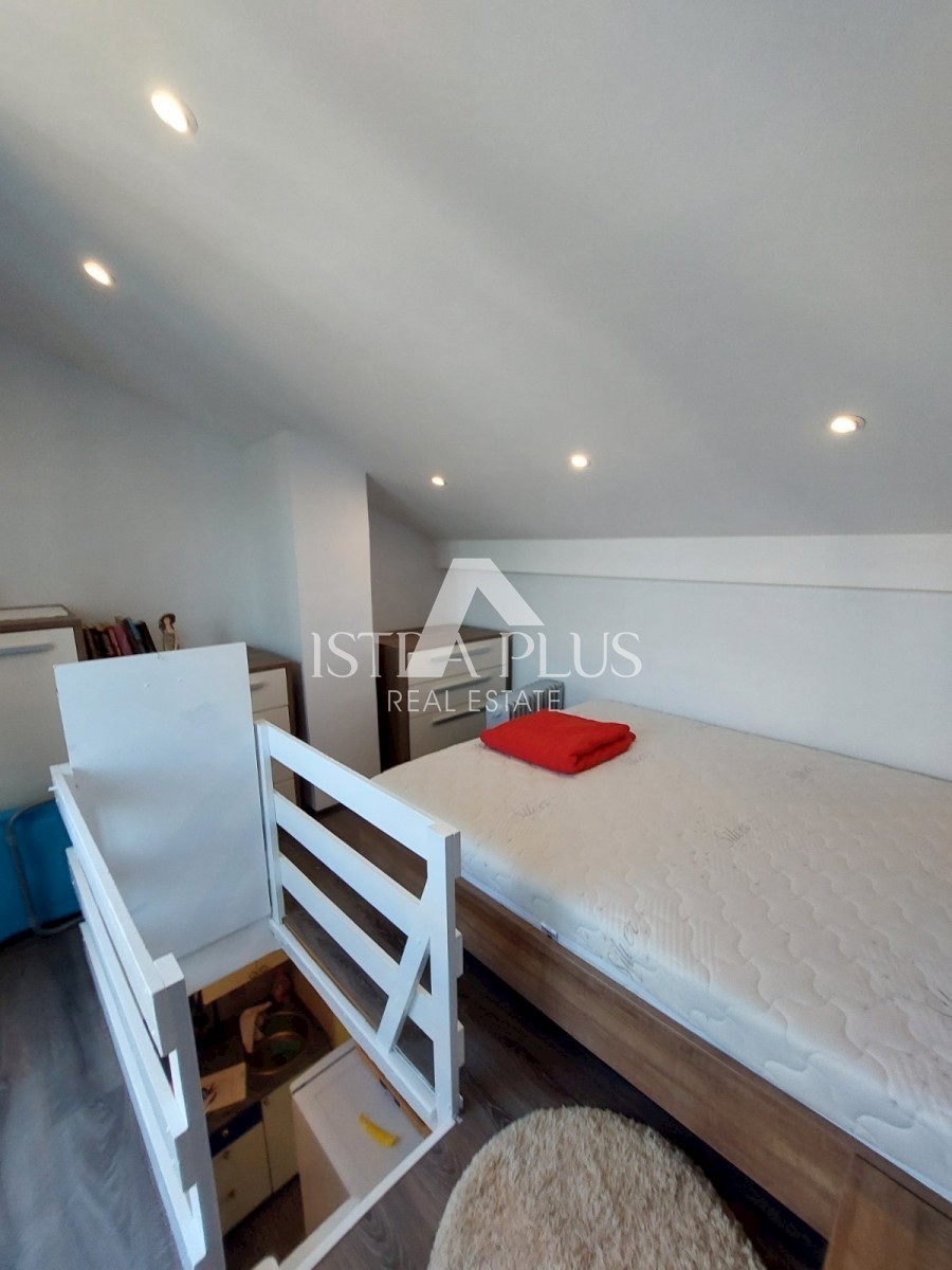 S209 Stanovanje v 2. nadstropju, 300 m od morja v ČERVAR-PORATU Stanovanje obsega: kuhinjo, kopalnico, dnevno sobo, balkon in galerijo, kjer je spalni del. Stanovanju pripada tudi strešna terasa za uporabo. Električno ogrevanje.