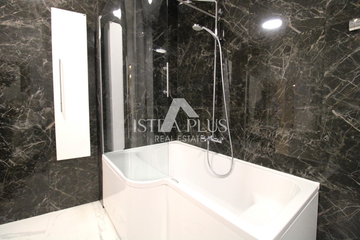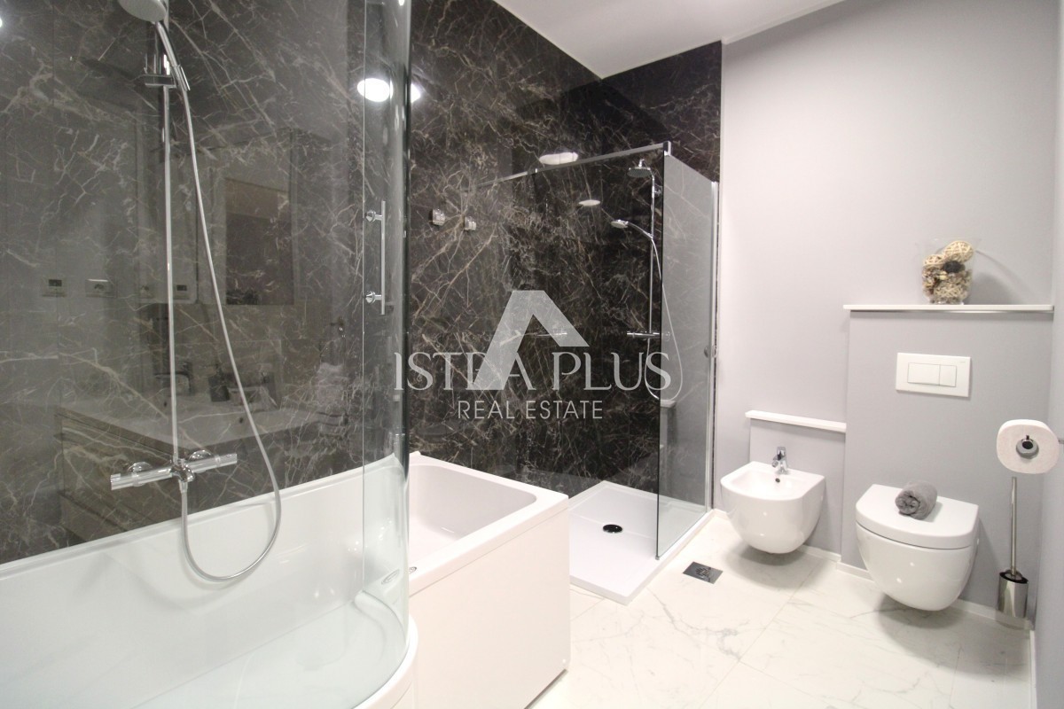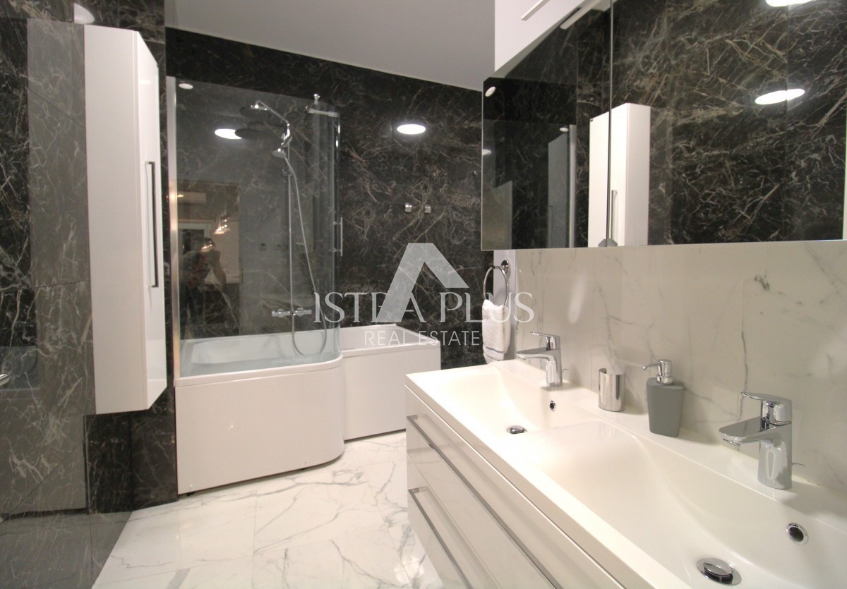 S216 Luksuzno stanovanje v središču Poreča, kombinacija sodobnega udobja in zgodovinskega šarma Stanovanje v pritličju z 32m2 dvorišča Stanovanje v pritličju 95,3 m2 je sestavljeno iz hodnika, spalnice z lastno kopalnico in izhodom na dvorišče. Udobna d
