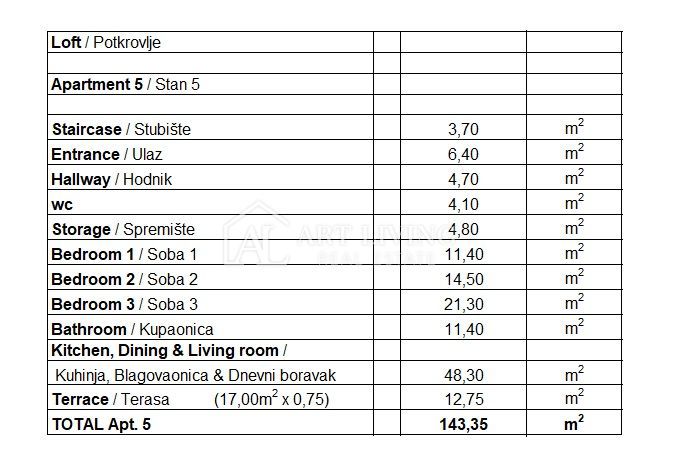 Istra, Poreč, okolica! Zgradba L - Penthouse V mirnem in lepem naselju, le 3 km od centra Poreča in 2 km od morja in urejenih plaž, se prodaja ta edinstveni penthouse v drugem nadstropju manjše stavbe atraktivne in moderne arhitekture s skupno 5 stanov