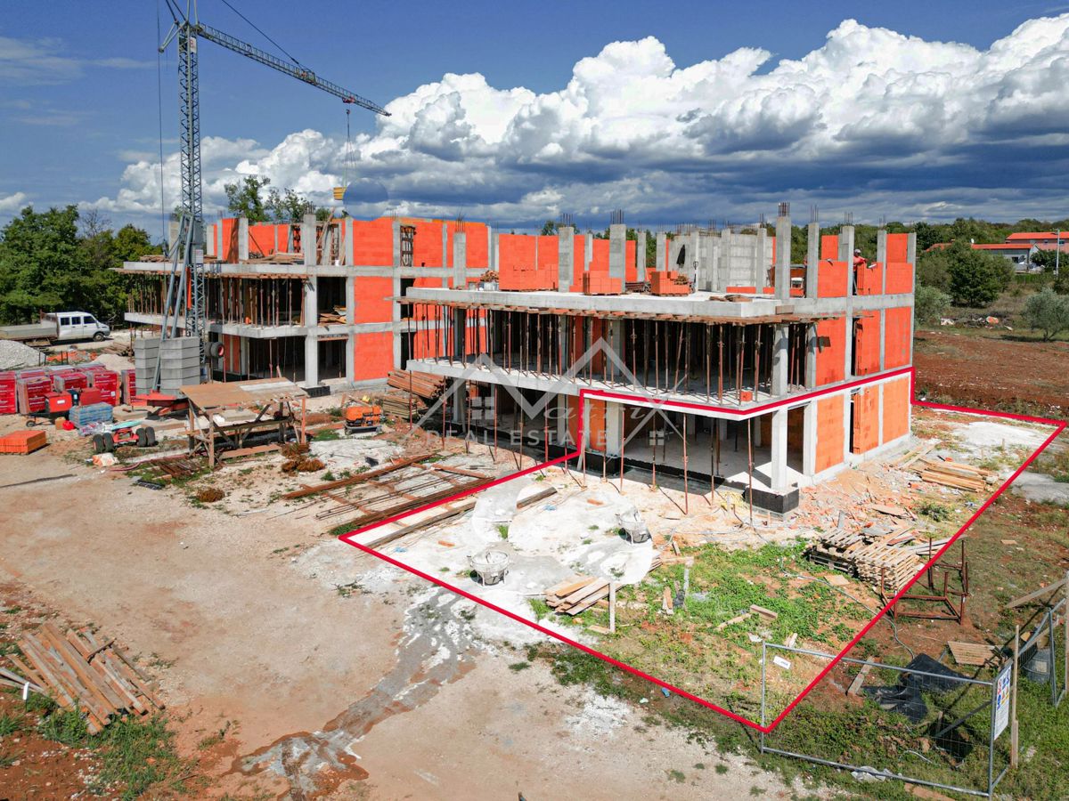 Poreč, Sodobno stanovanje z veliko parcelo Na prodaj je sodobno in prostorno stanovanje v gradnji, ki se nahaja v mirnem delu Poreča, le nekaj minut vožnje od centra in vseh pomembnih vsebin. To stanovanje, idealno za družinsko življenje ali turistični n
