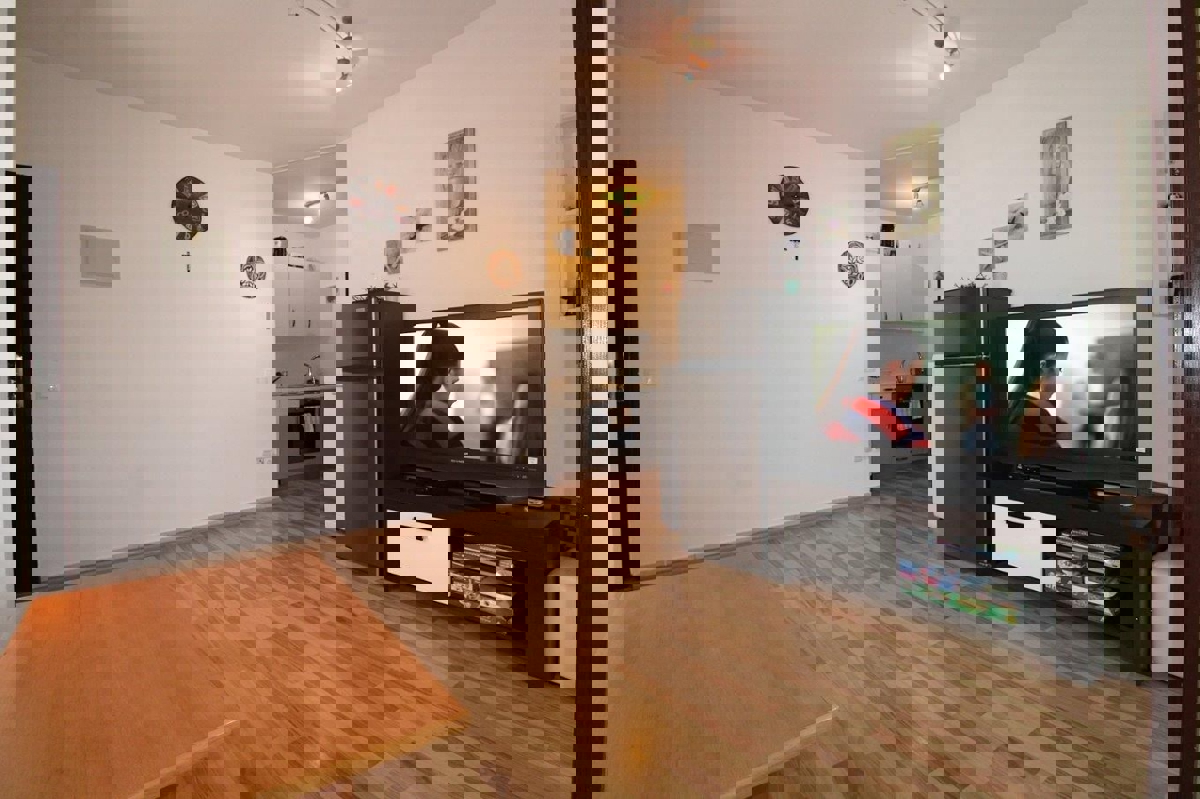 Stanovanje velikosti 33,37 m², ki se nahaja v pritličju stanovanjske stavbe, obsega predsobo, spalnico, kopalnico, dnevno sobo, kuhinjo z jedilnico ter pokrito teraso in vrt.Stanovanje se prodaja opremljeno, pripada pa mu tudi parkirno mesto pred stavbo.O
