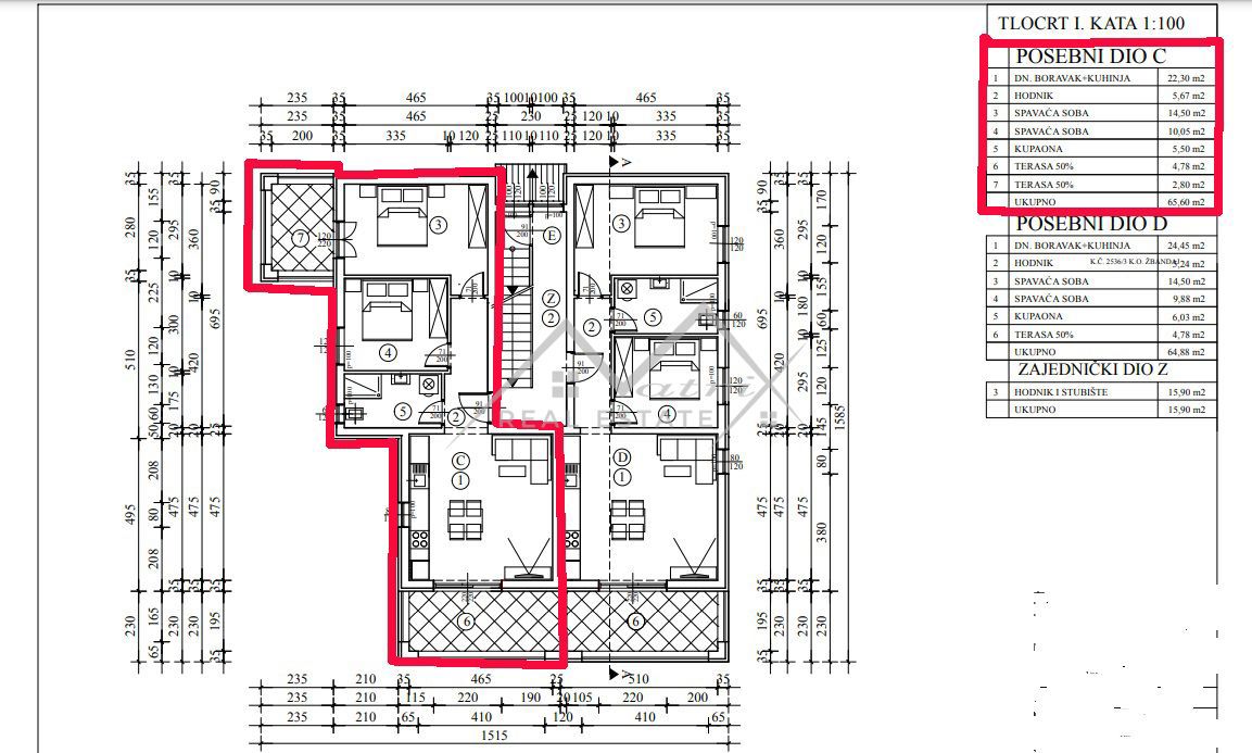 Poreč, Dvosobno stanovanje v prvem nadstropju na mirni lokaciji V mirnem predelu nedaleč od centra Poreča se nahaja to moderno stanovanje v prvem nadstropju stanovanjske zgradbe s petimi enotami. Stanovanje ima skupno površino 69,38 m² in ponuja prostorn