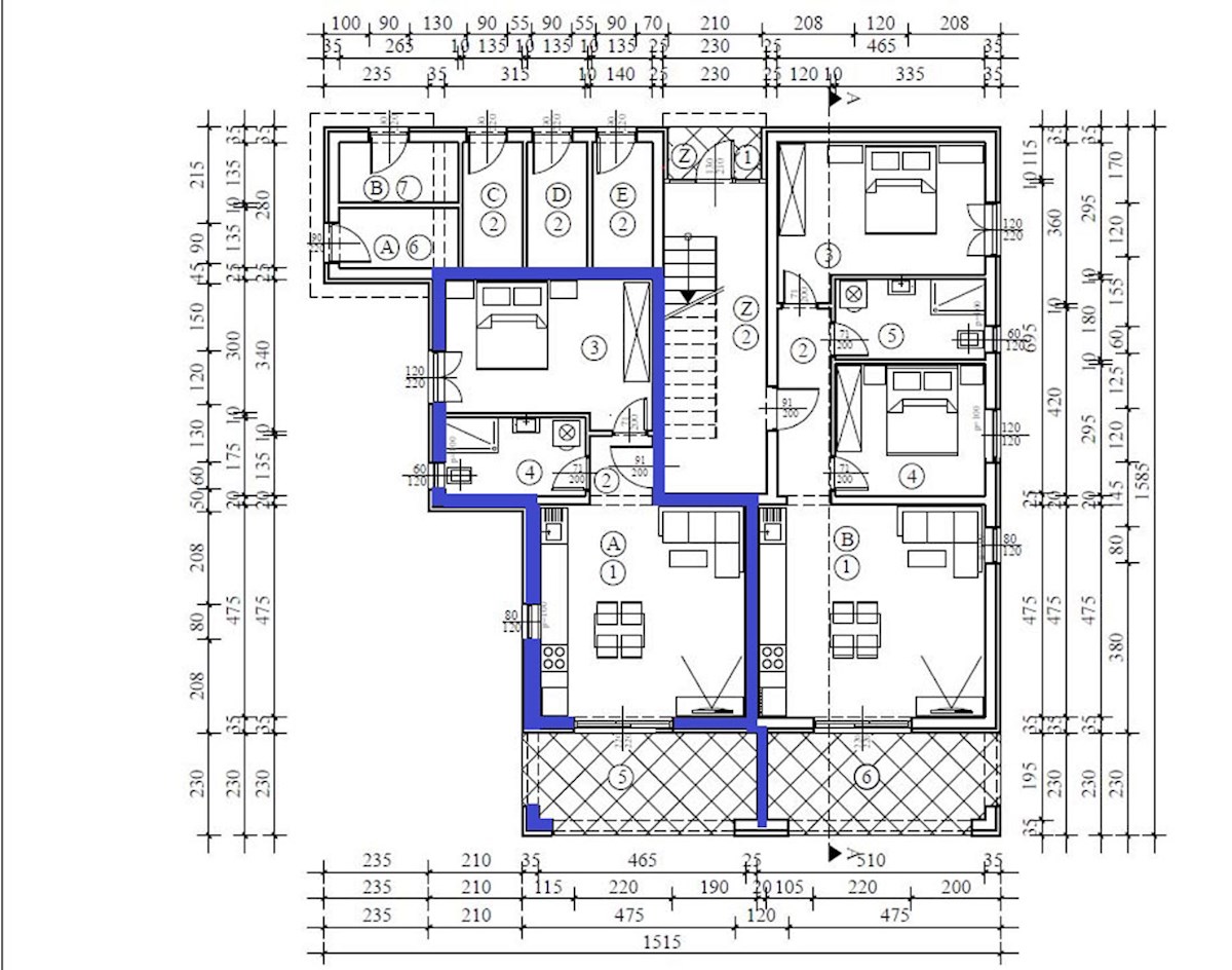 Nahajajo se približno 9 km od mesta in morja, 1 km od izvoza na avtocesto, na koncu vasi, na mirni lokaciji, ta stavba z vsega petimi apartmaji se gradi. Apartmaji se dokončujejo po sistemu "ključ v roke". Predviden zaključek: marec 2025. Vsak apartma im