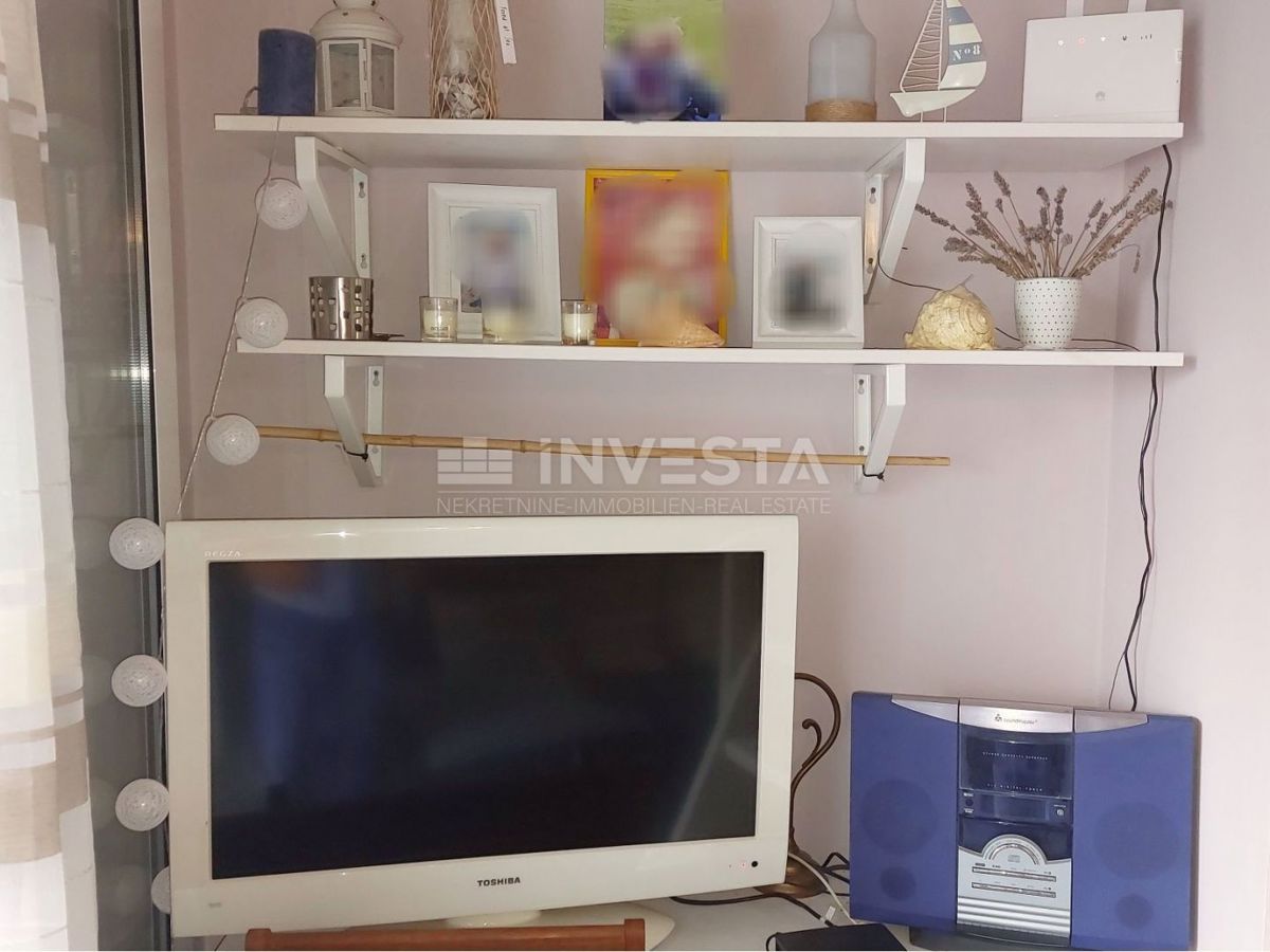 V Červar-Portu, 150m od morja, je naprodaj dvoetažno stanovanje površine 46,80 m2, ki se nahaja v tretjem nadstropju stanovanjske stavbe. Stanovanje obsega vhodni hodnik, kuhinjo, kopalnico, dnevno sobo z izhodom na teraso in dve spalnici, od katerih je