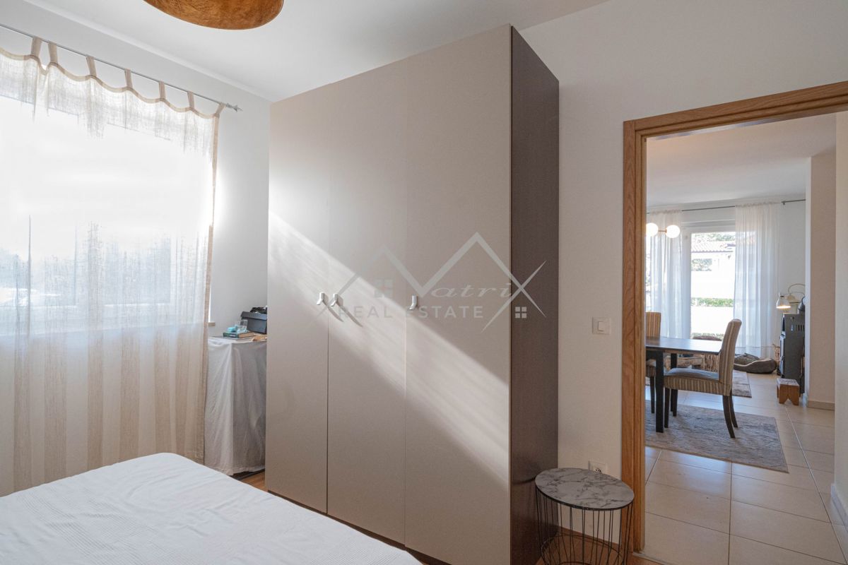 Poreč okolica, Praktično stanovanje v pritličju z dvoriščem Prodaja se stanovanje v mirnem predmestju Poreča, na odlični lokaciji blizu mesta in morja. Stanovanje ima površino 62,67 m² ter zasebni vrt velikosti 20,72 m². Nepremičnina ima odlično razpored