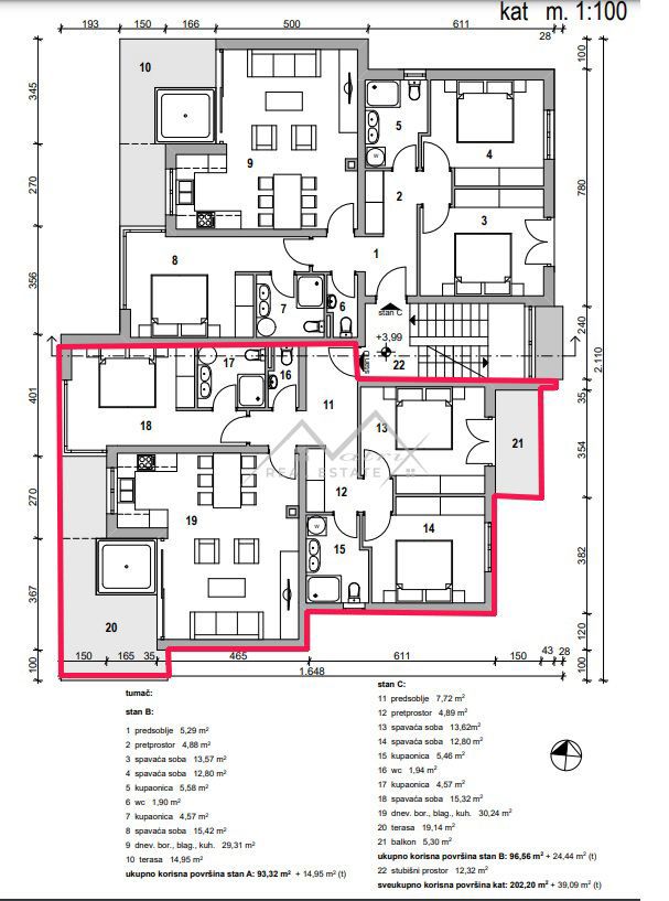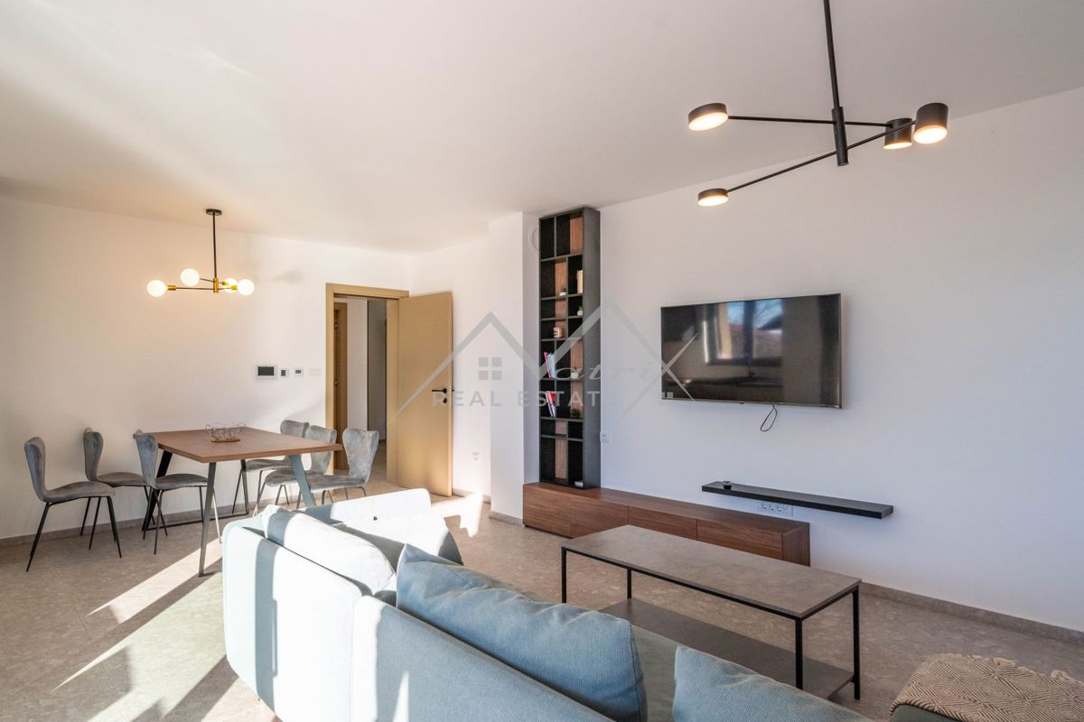 To na novo zgrajeno stanovanje ponuja popolno kombinacijo luksuza in udobja, z velikostjo 96,56 kvadratnih metrov in se nahaja v pritličju sodobne stanovanjske stavbe s samo štirimi enotami. Njegov odprt koncept dnevne sobe, kuhinje in jedilnice ustvarja