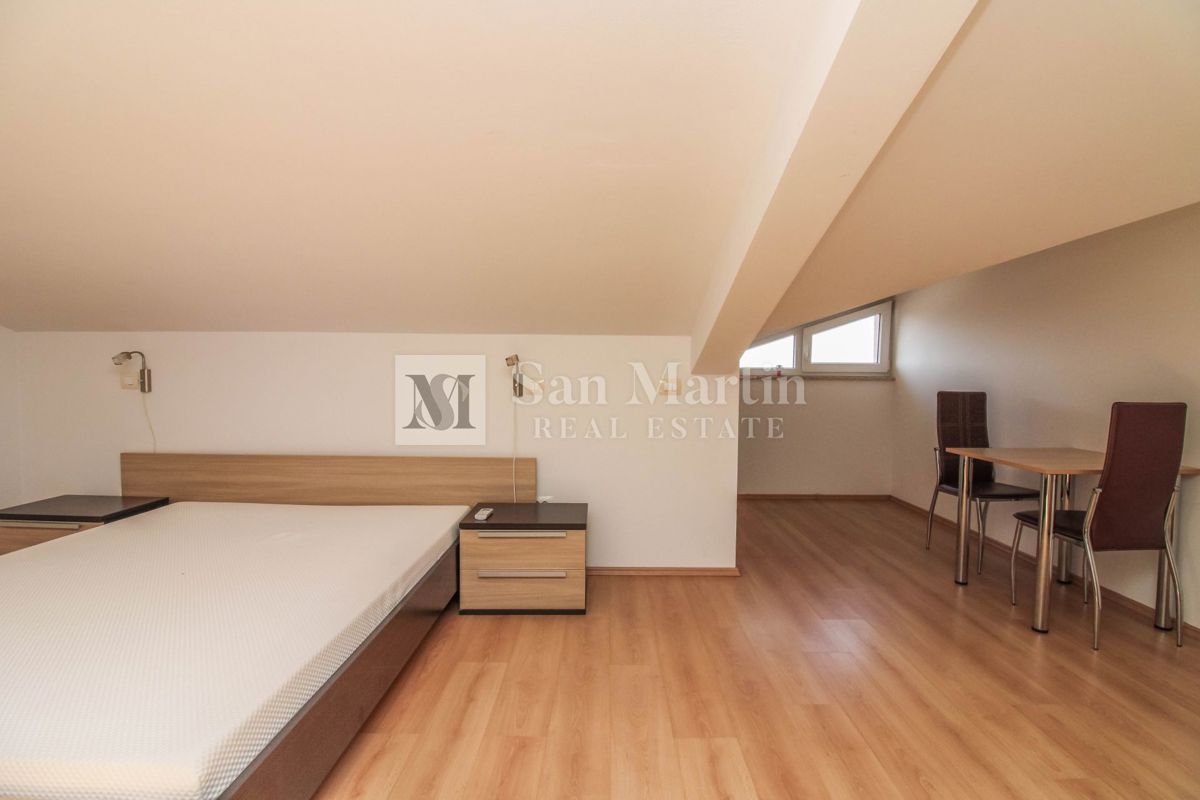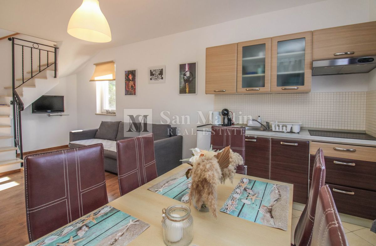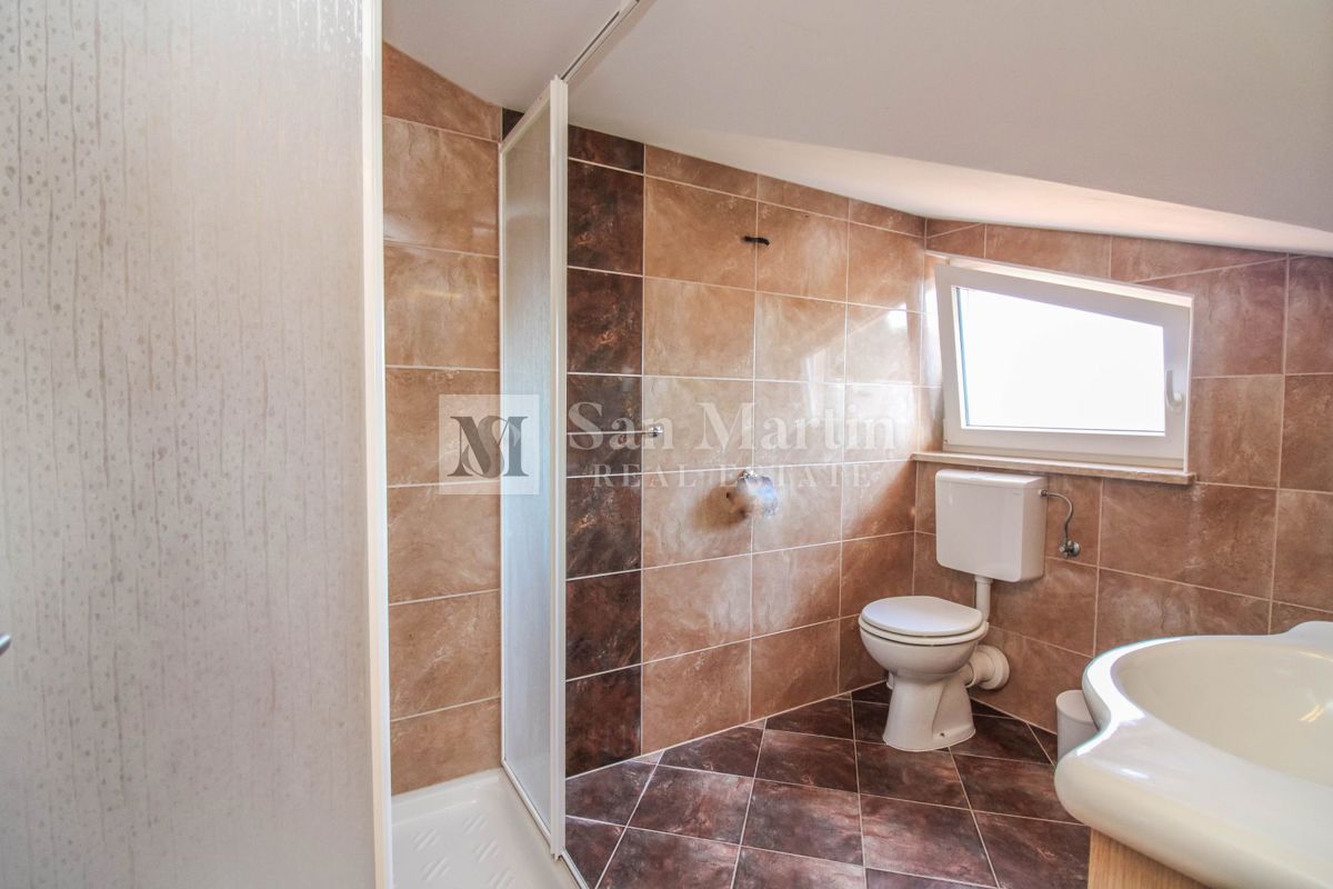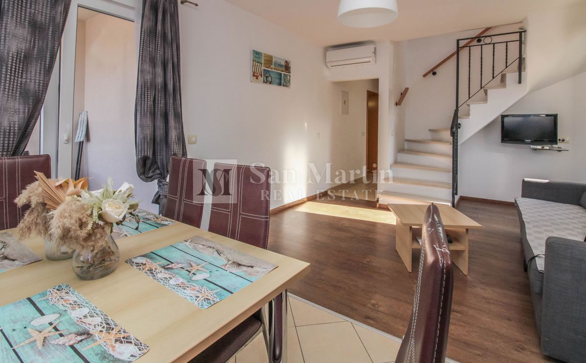 Istra, Poreč – Dvosobno stanovanje v centru na atraktivni lokaciji Na odlični lokaciji je naprodaj to lepo dvoetažno stanovanje s skupno površino 82 m². Stanovanje obsega dve spalnici, kuhinjo z dnevno sobo, dve kopalnici in shrambo. Iz dnevne sobe je iz