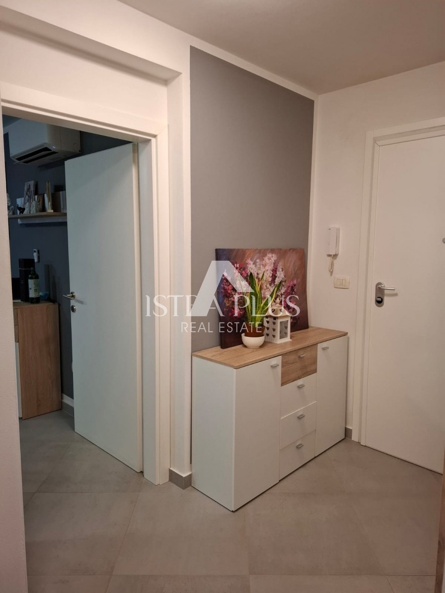 S303 V Poreču, v mirnem delu mesta, se nahaja stanovanje, ki se nahaja v pritličju novejše stavbe. S površino 61,73 m obsega: hodnik, kopalnico, dve spalnici, kuhinjo in jedilnico z dnevno sobo ter izhodom na lepo udobno pokrito teraso in urejeno dvorišč