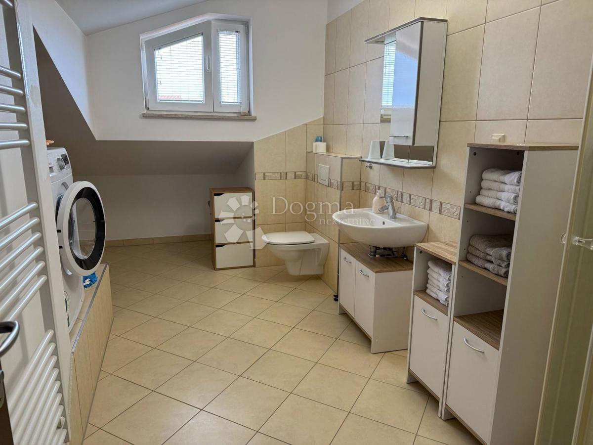 POREČ - Prostorno stanovanje 3km od morja PRILOŽNOST!!! Ta apartma se nahaja le 3 km od Poreča in čudovitih plaž. Stanovanje je v manjšem stanovanjskem objektu na robu naselja in se nahaja v 3. nadstropju. Njena površina je 84m2 in je sestavljena iz vhodn