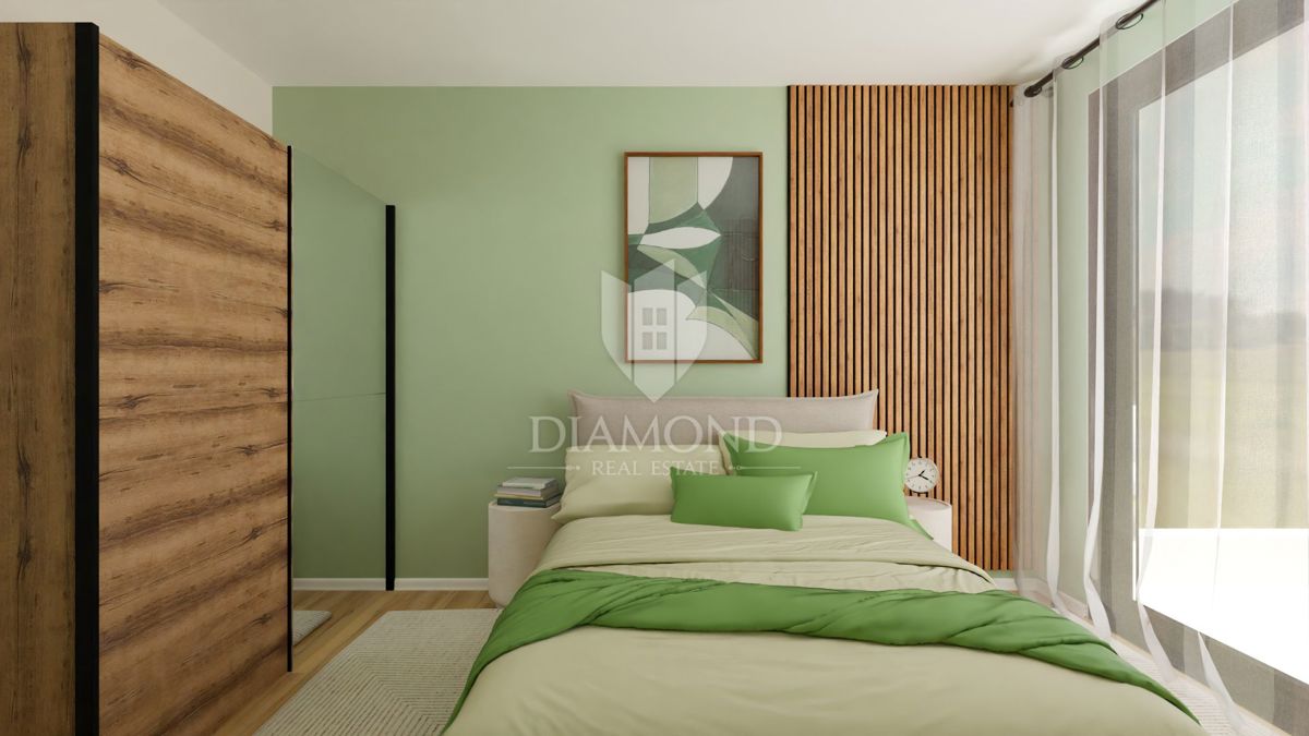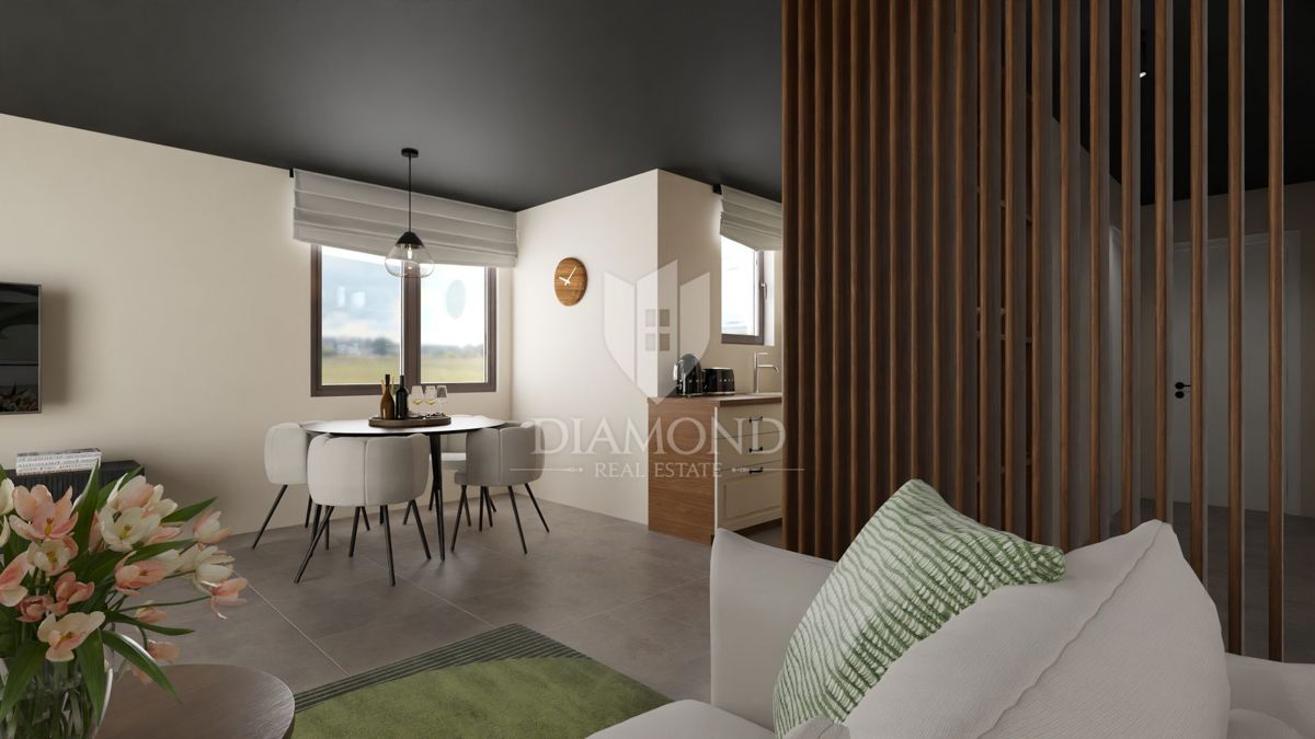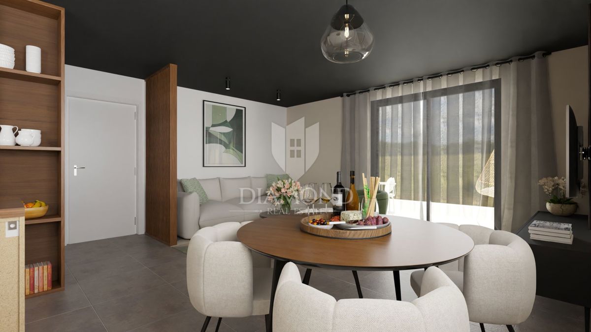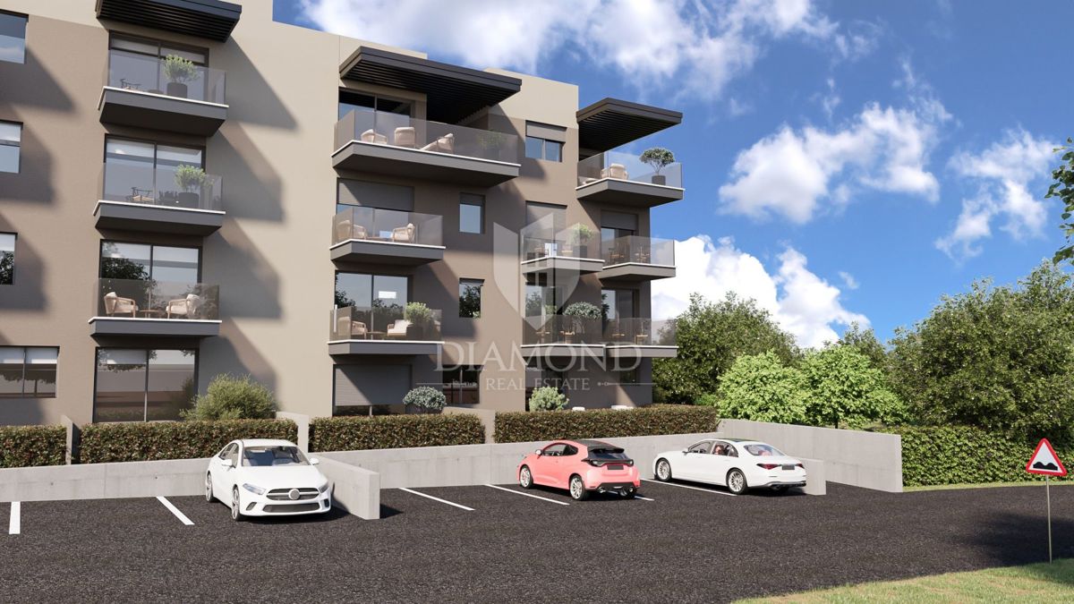 Poreč, okolica – Sodobno stanovanje v drugem nadstropju blizu morja! Le 8 km od mesta Poreč se nahaja ta sodobna stanovanjska zgradba s skupno 23 stanovanji. Stanovanje se nahaja v drugem nadstropju in ima skupno površino 61,36 m². Sestavlja ga hodnik,