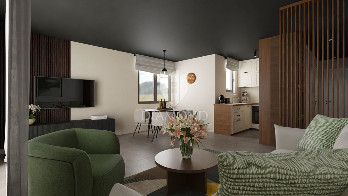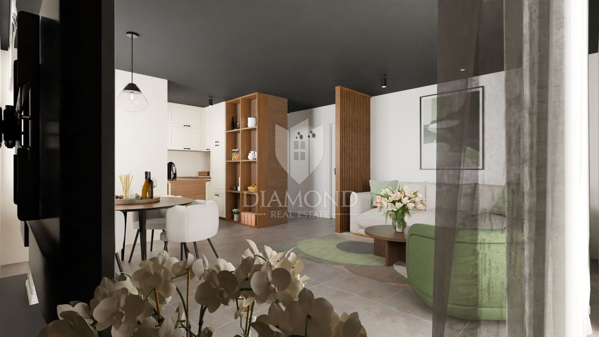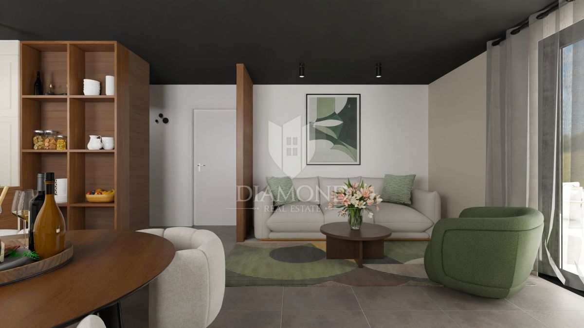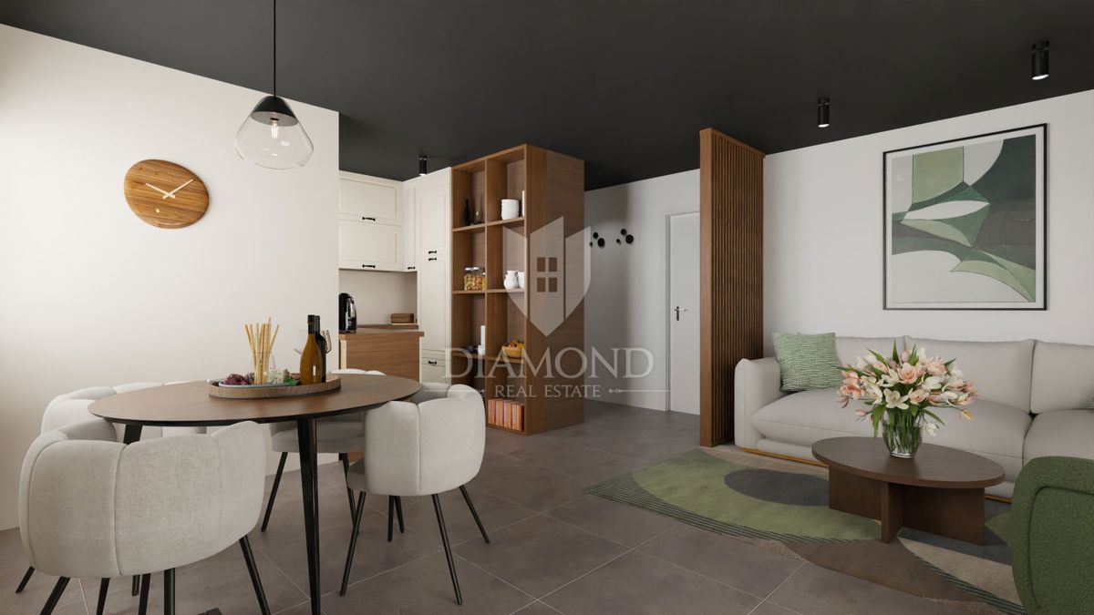 Poreč, okolica – Sodobno stanovanje v drugem nadstropju blizu morja! Le 8 km od mesta Poreč se nahaja ta sodobna stanovanjska zgradba s skupno 23 stanovanji. Stanovanje se nahaja v drugem nadstropju in ima skupno površino 61,36 m². Sestavlja ga hodnik,