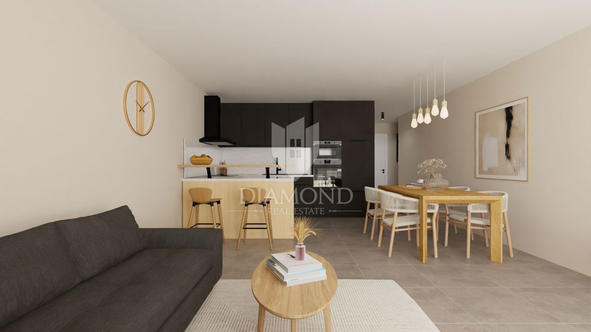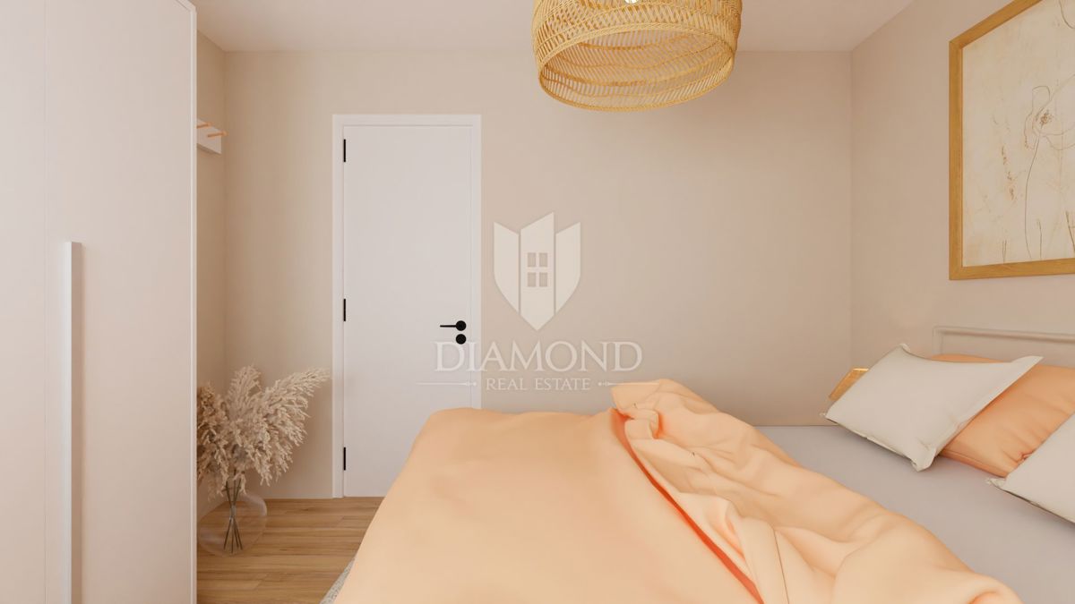 Poreč, okolica, udobno stanovanje v prvem nadstropju nedaleč od morja! Nedaleč od mesta Poreč, le 8 km stran, se nahaja ta sodoben stanovanjski objekt s skupno 23 stanovanji. Stanovanje se nahaja v prvem nadstropju in ima skupno površino 73,16 m2. Sestoji