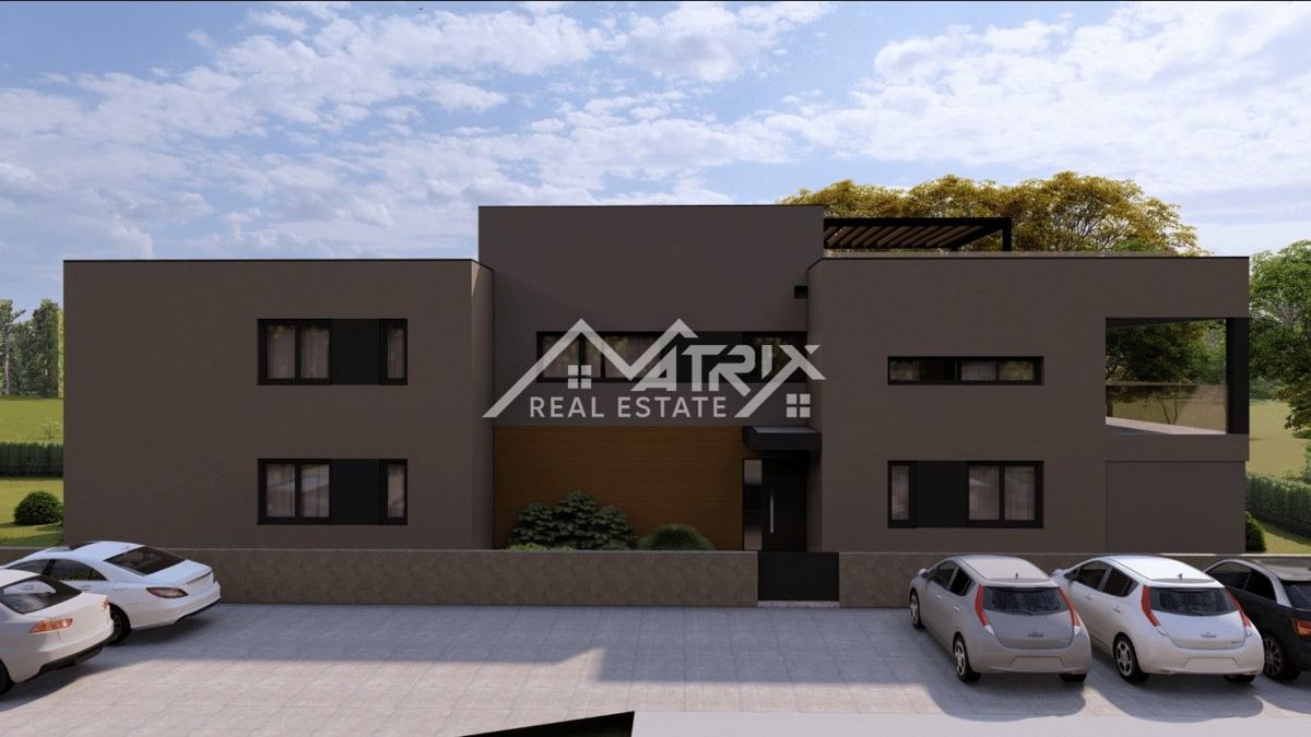 Dvosobno stanovanje s teraso v kvalitetni novogradnji – 4 km od centra Poreča Na prodajo je dvosobno stanovanje v prvem nadstropju manjše stanovanjske stavbe s samo 5 stanovanji, ki se nahaja v mirnem naselju na robu naselja, le 4 km od centra Poreča. S