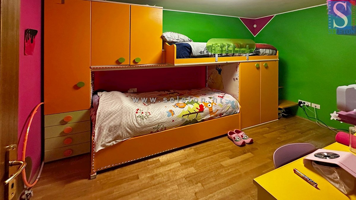Prodamo stanovanje v pritličju stavbe površine 77 m², sestavljeno iz dnevne sobe z jedilnico, kuhinje, terase, hodnika, dveh spalnic in kopalnice. Stanovanje se prodaja v celoti opremljeno, ima centralno ogrevanje na elektriko, klimo, vrt cca 60 m², sku