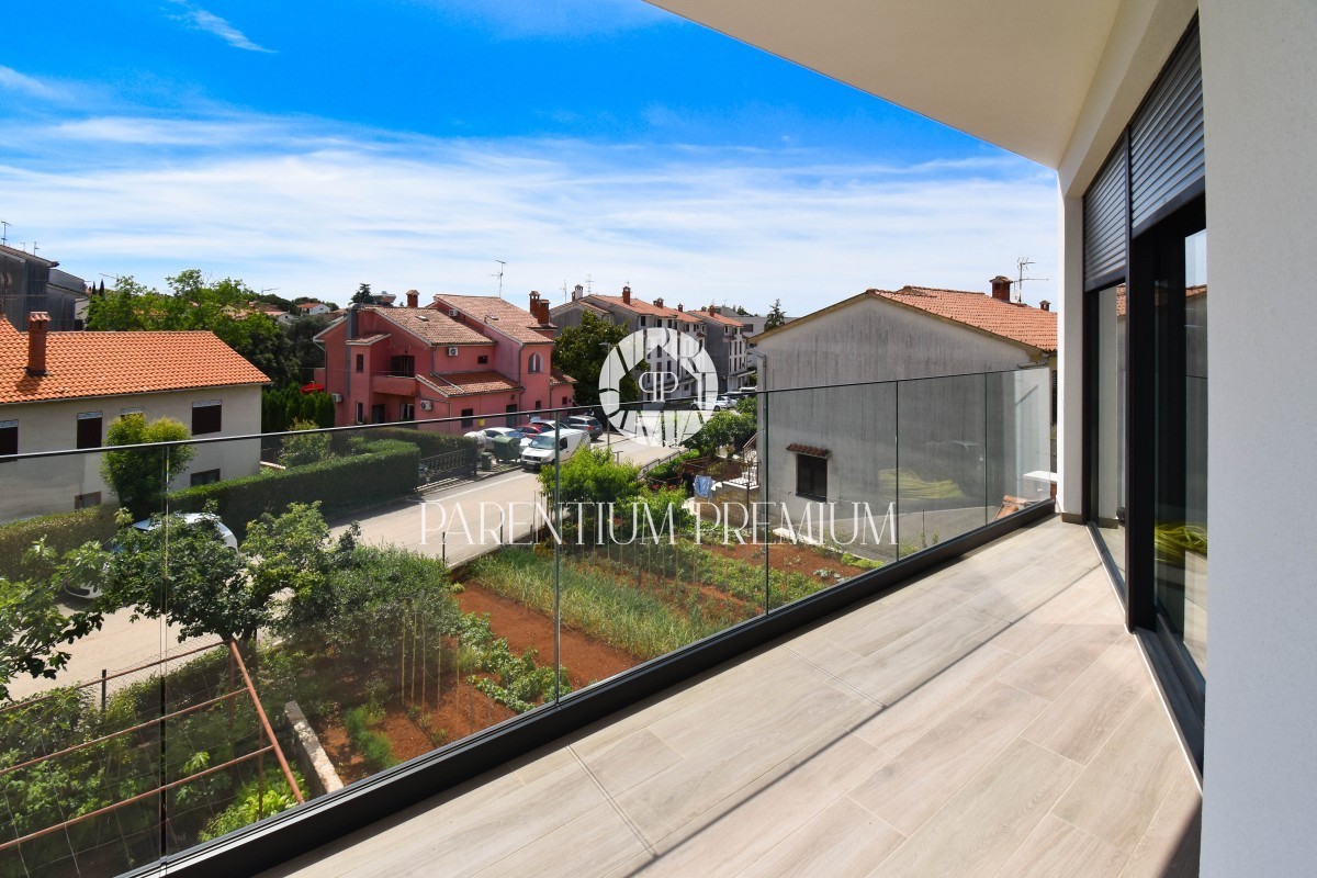 Istra, Poreč Vrhunska novogradnja v bližini centra Poreča in le 400m oddaljena od prvih plaž. Prodamo stanovanje pod oznako 1. nadstropje, površine 57m2, sestavljeno iz odprte dnevne sobe, kuhinje, jedilnice z izhodom na sončni balkon, spalnice in kopa