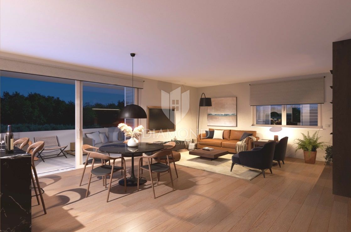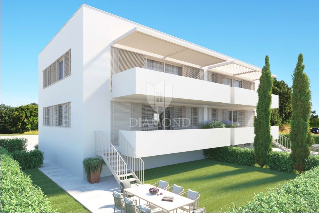 Poreč, ekskluzivno stanovanje v prvem nadstropju z vrtom! Ta sodoben stanovanjski objekt s skupno štirimi stanovanji se bo nahajal v naselju znotraj mesta Poreč, le 3,5 km od centra in plaž. V pritličju bosta dve stanovanji, v nadstropju pa dve. Skupna