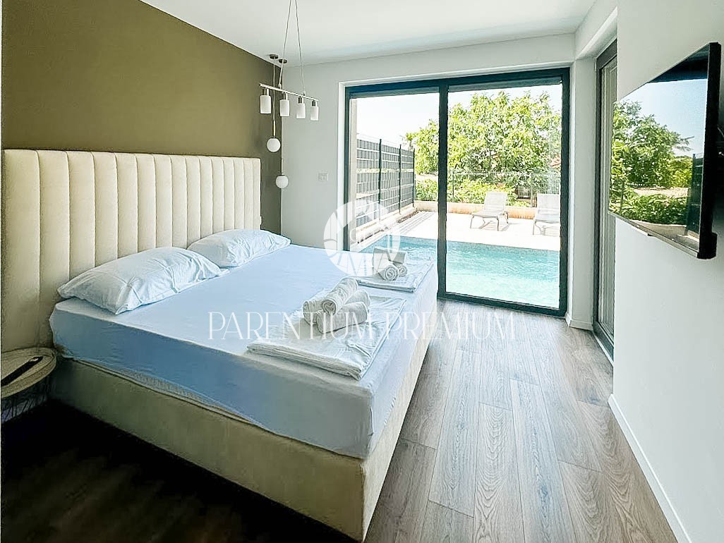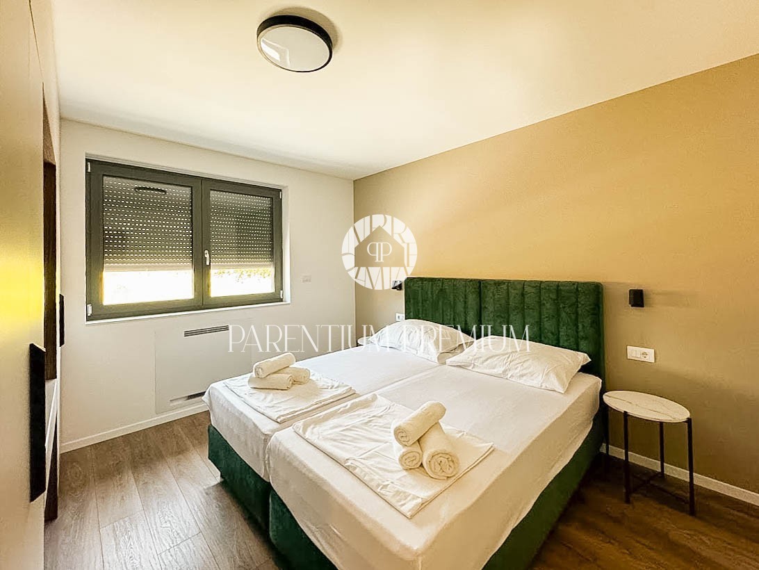Istra, Poreč To odlično stanovanje se nahaja v bližini mesta Poreč v pritličju moderne stavbe z bazenom skupne površine 93,32m2. To stanovanje je sestavljeno iz predsobe, treh prostornih spalnic, dveh kopalnic, od katerih se ena nahaja v glavni spalnici