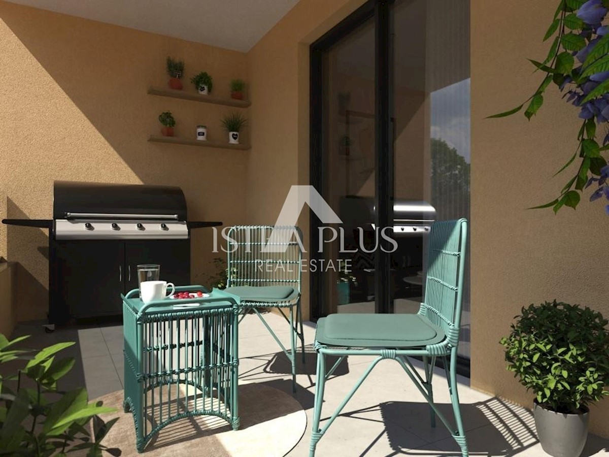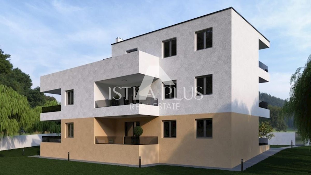 S38 Predstavljamo vam novo ekskluzivno stavbo z apartmaji v bližini Poreča! Kvalitetna in sodobna gradnja s skrbno izbranimi materiali in opremo. Stavba je sestavljena iz dveh stanovanj v pritličju z dvoriščem, dveh stanovanj v prvem nadstropju in prostor