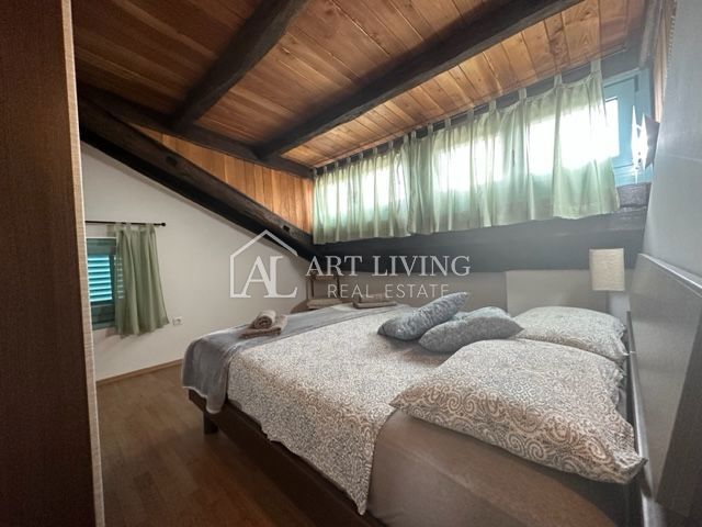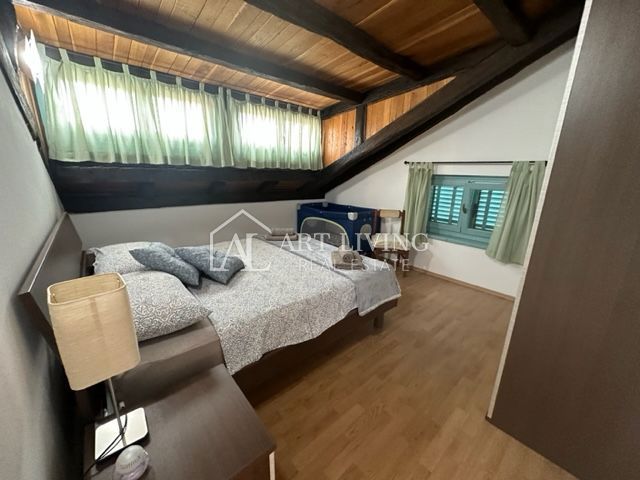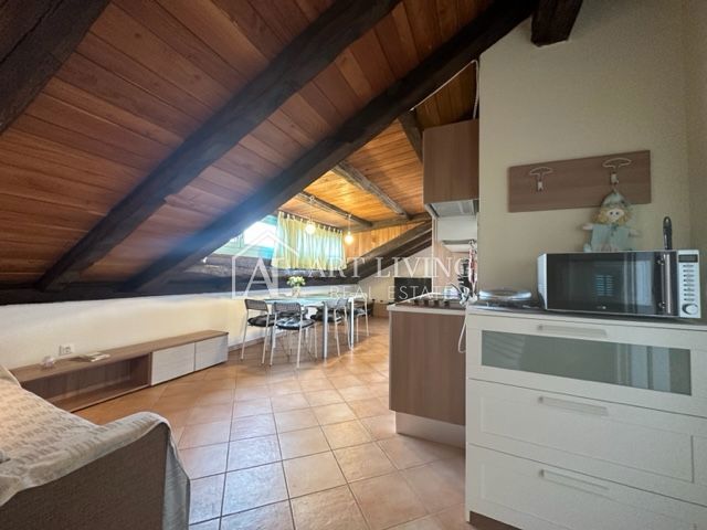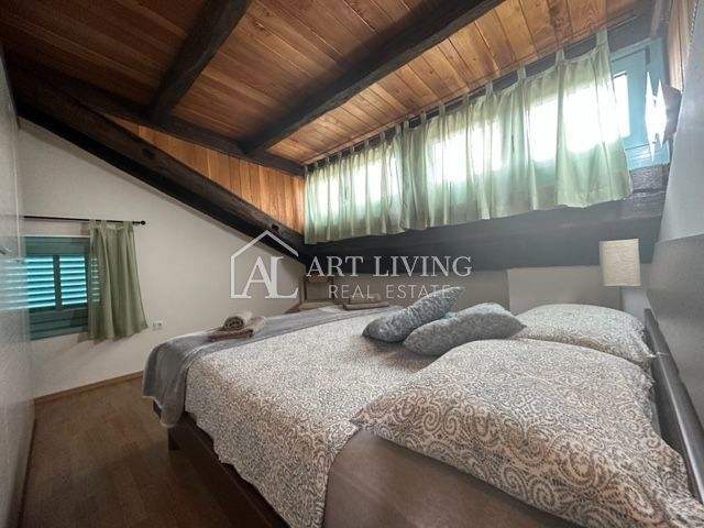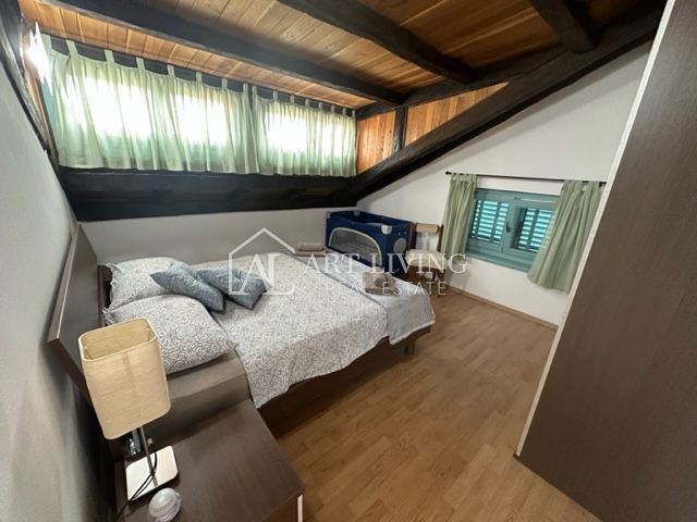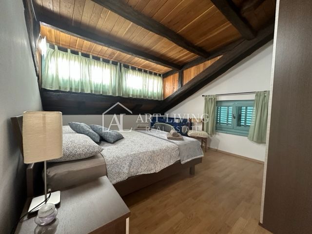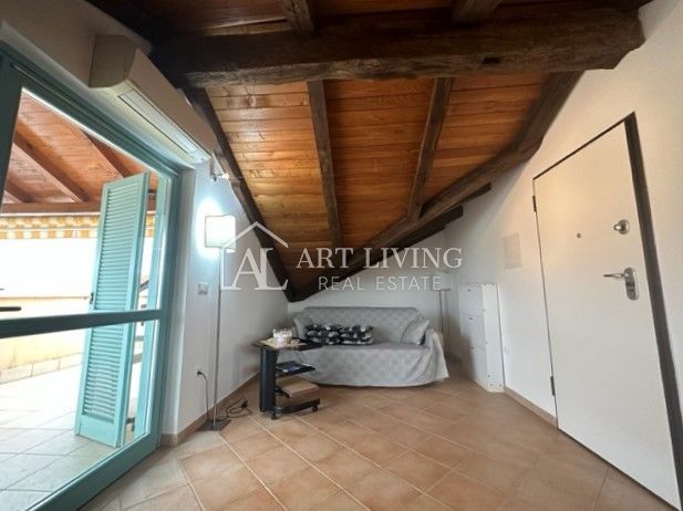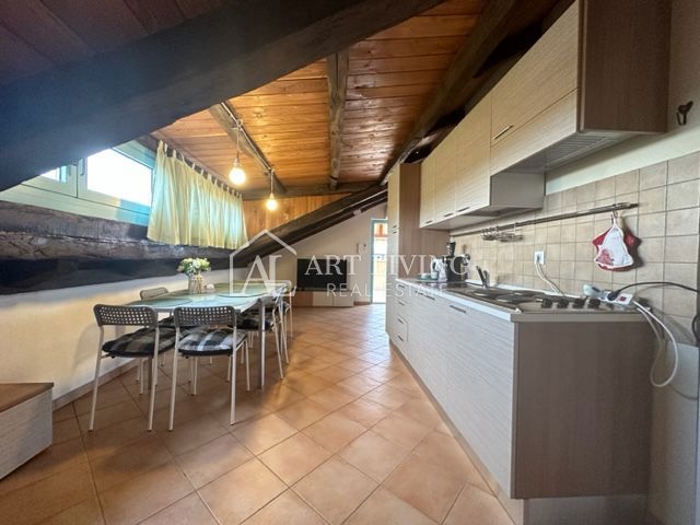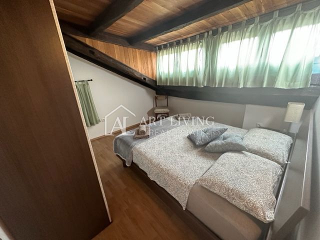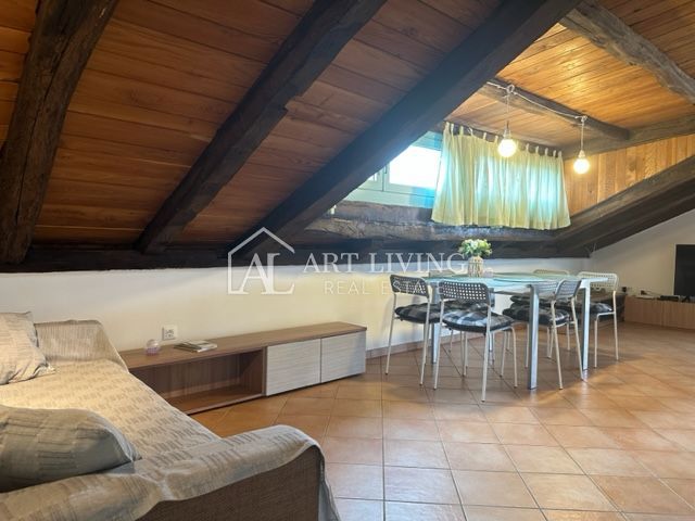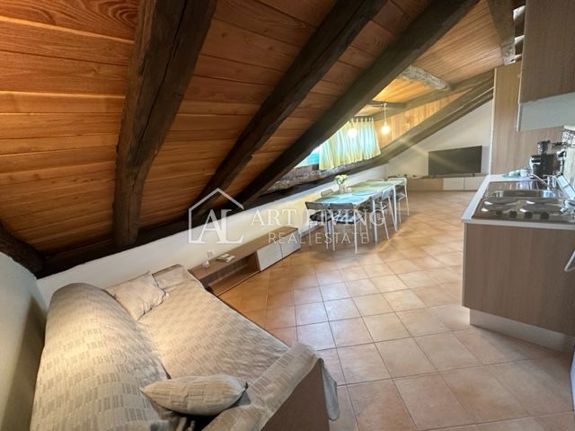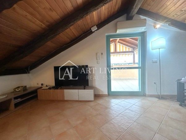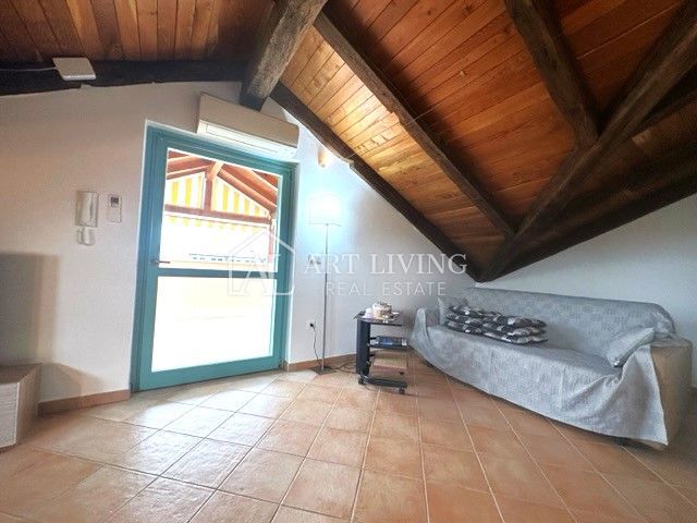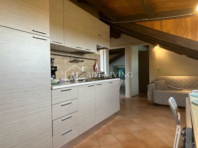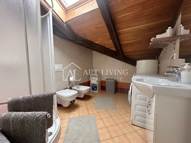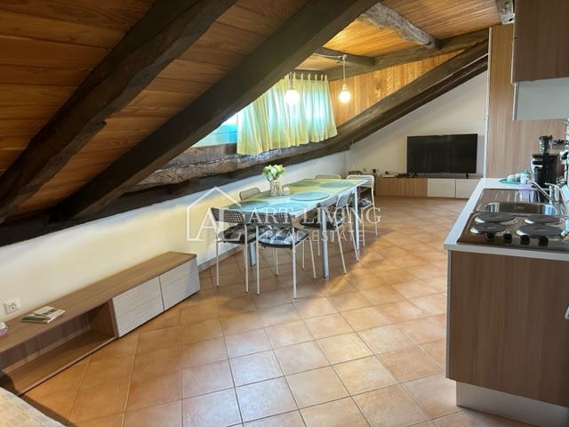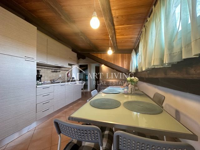 Poreč, okolica, Prodamo očarljivo mansardno stanovanje v mirni in lepi vasici, le 7 km od morja in lepih plaž ter centra Poreča. Stanovanje velikosti 91 m2 obsega dnevno sobo z odprto kuhinjo in jedilnico z izhodom na lepo prostorno teraso, 2 spalnici i