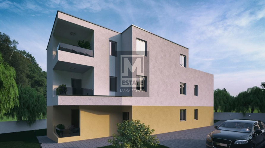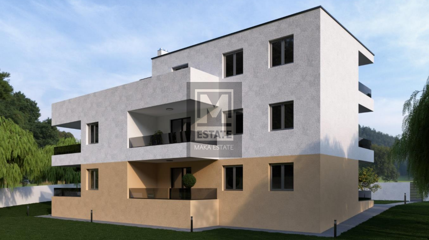 Poreč, okolica, moderan stan u prizemlju sa vrtom! Nudimo vam ovaj predivan stan smješten u novoj stambenoj zgradi u blizini Poreča. Ovaj stan u prizemlju dolazi s prostranom okućnicom površine 195 četvornih metara. Zgrada se ponosi modernom arhitekturom