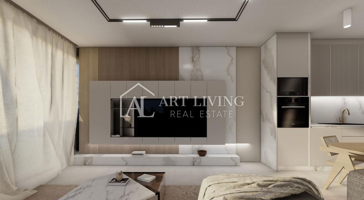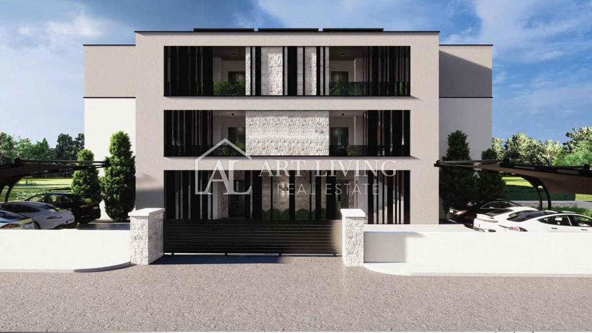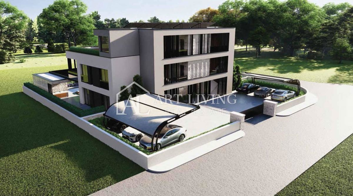 Istra, Poreč, okolica Stan B Prodaje se luksuzni dvosobni stan s bazenom modernog dizajna u novogradnji, na mirnoj i lijepoj lokaciji, udaljena svega 7 km od grada Poreča te 1,5 km od mora i uređenih plaža. Stan se nalazi u prizemlju zgrade sa ukupno 4