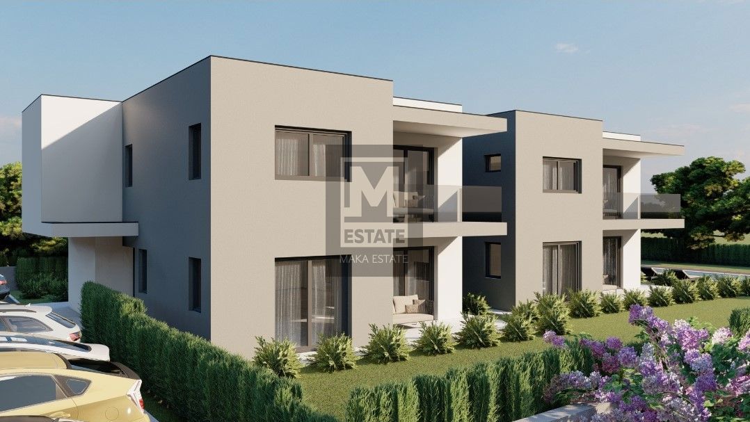 Poreč, okolica, Stan u prizemlju s vrtom i zajedničkim bazenom Nedaleko od samog centra grada Poreča, udaljenog svega 5 km, prodajemo ovaj stan u izgradnji u prizemlju zgrade s pet stambenih jedinica koje će zadovoljiti visoke standarde udobnosti i moder