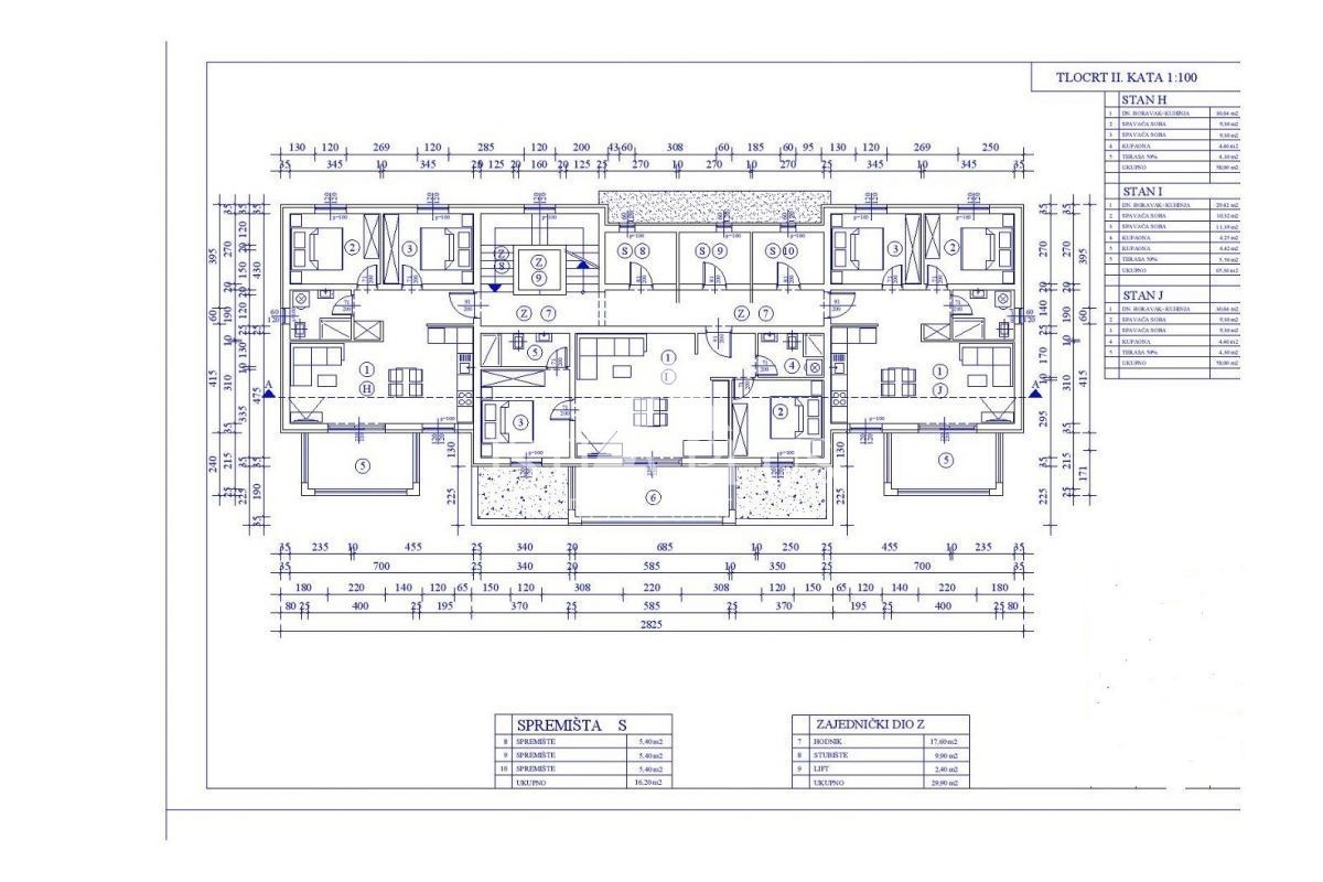 S153 Stanovi u izgradnji od 70,76m2 koji se sastoji od predsoblja, kuhinje sa blagovaonom i dnevnog boravka, dvije spavaće sobe, dva kupatila, terase sa pogledom na more, spremišta od 5.4 m2 te dva parkirna mjesta. Stanove od 70.76m2 nalazimo na prvom, dr